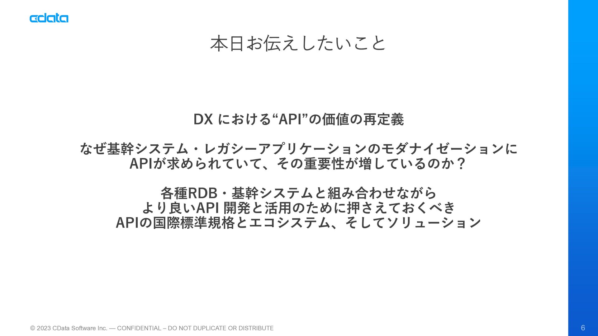 本セッションでは上記の課題を踏まえながら、活用されるAPIのあり方、API開発で利用することができるツールを紹介します。