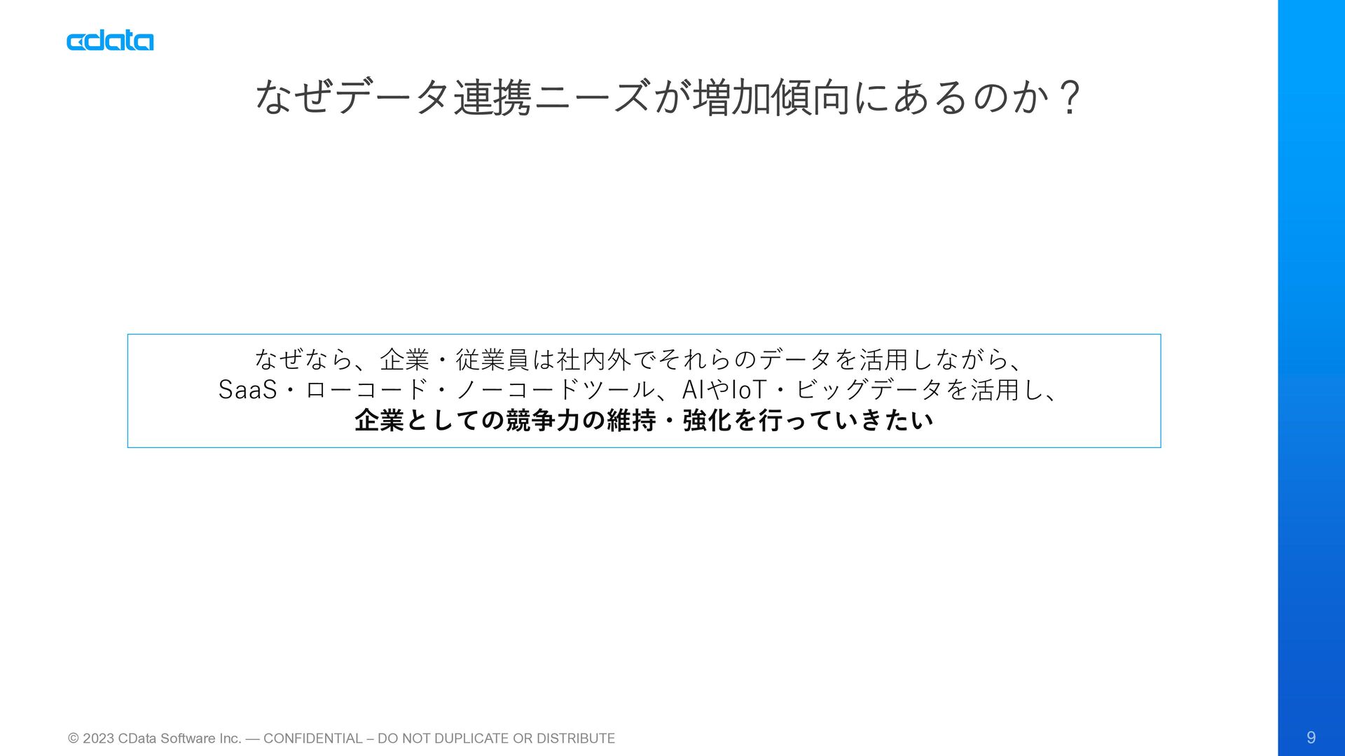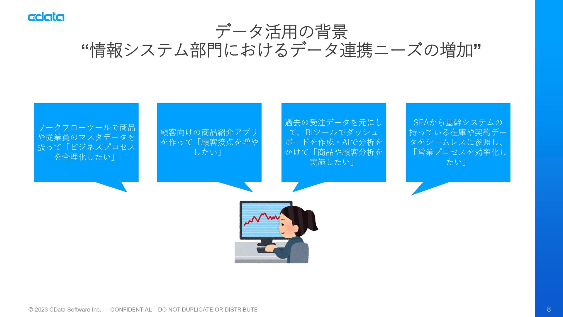 DXの流れの中で顧客エンゲージメントを強化するためのITプロジェクト、ノーコード・ローコードツールなどの活用のため、自社の基幹システムとのデータの連携ニーズが増えています。
