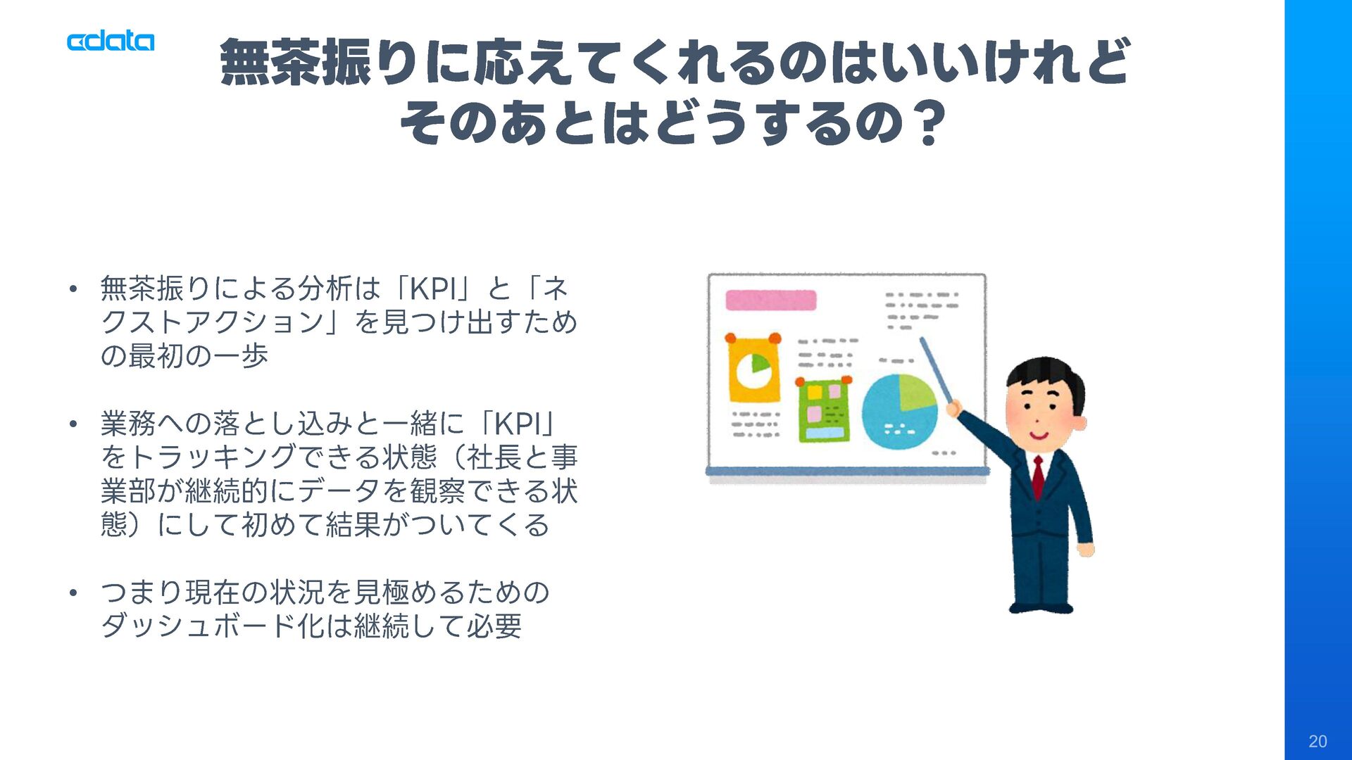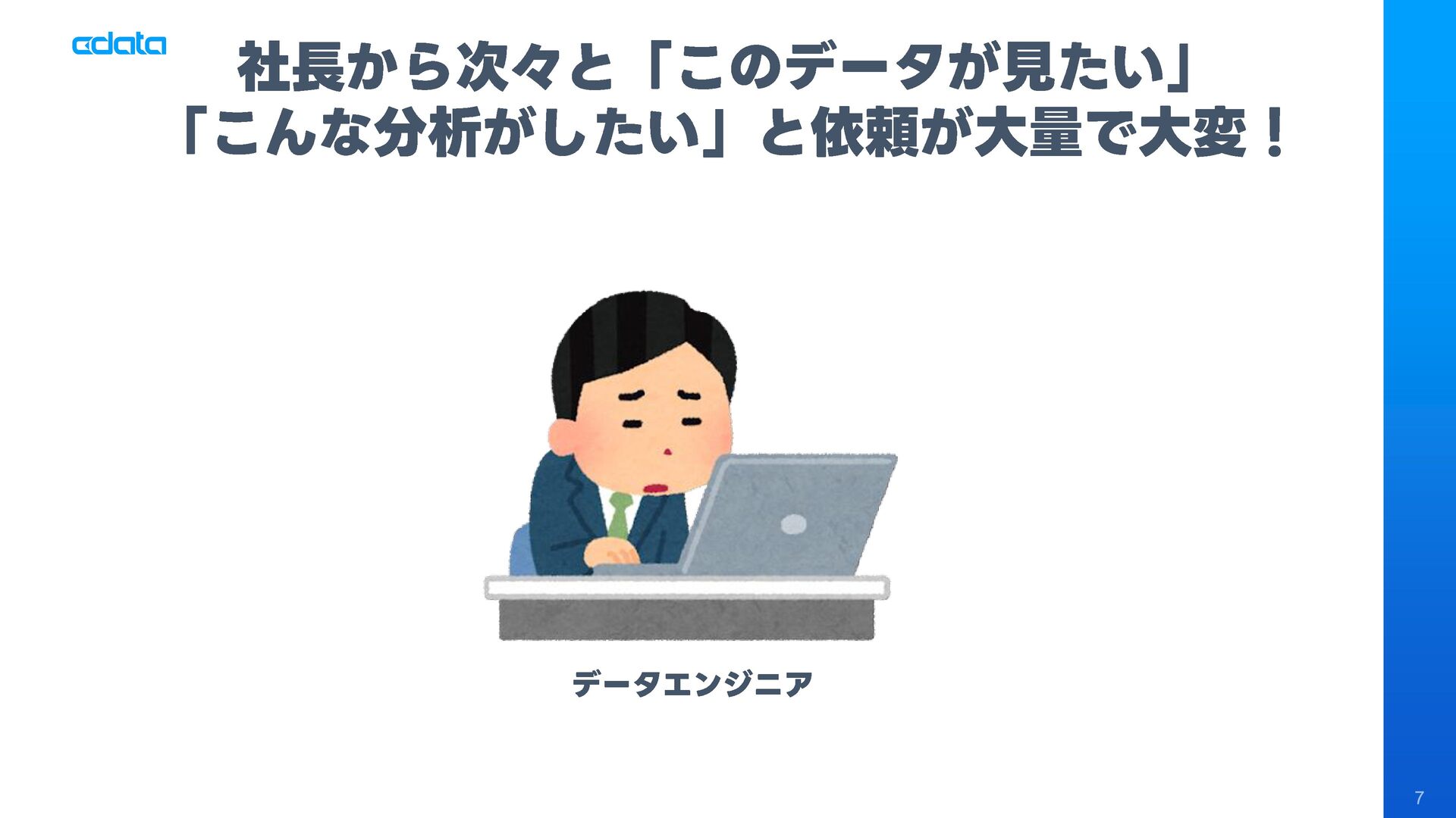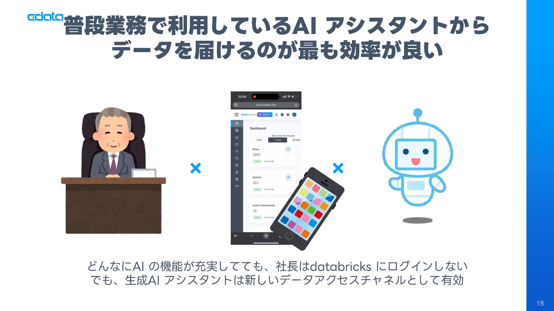 社長やビジネスユーザーからの「このデータが見たい」「こんな分析がしたい」という無茶振りリクエストに追われるデータエンジニアや経営企画室の皆様へ。ダッシュボードを作っても「この角度で見れないの?」「なんでこんなに時間がかかるの?」という声に悩まされていませんか? 本セッションでは、AIとMCP 、そしてDWH・Databricksを組み合わせた「社長のAI無茶振り駆動データ基盤開発」という新しいアプローチを紹介します。