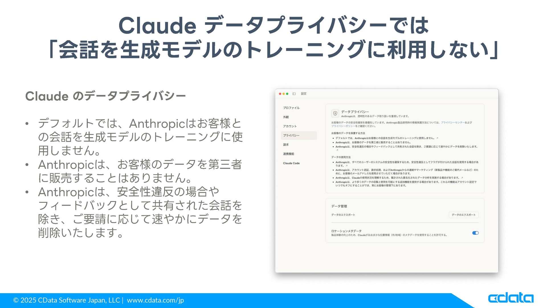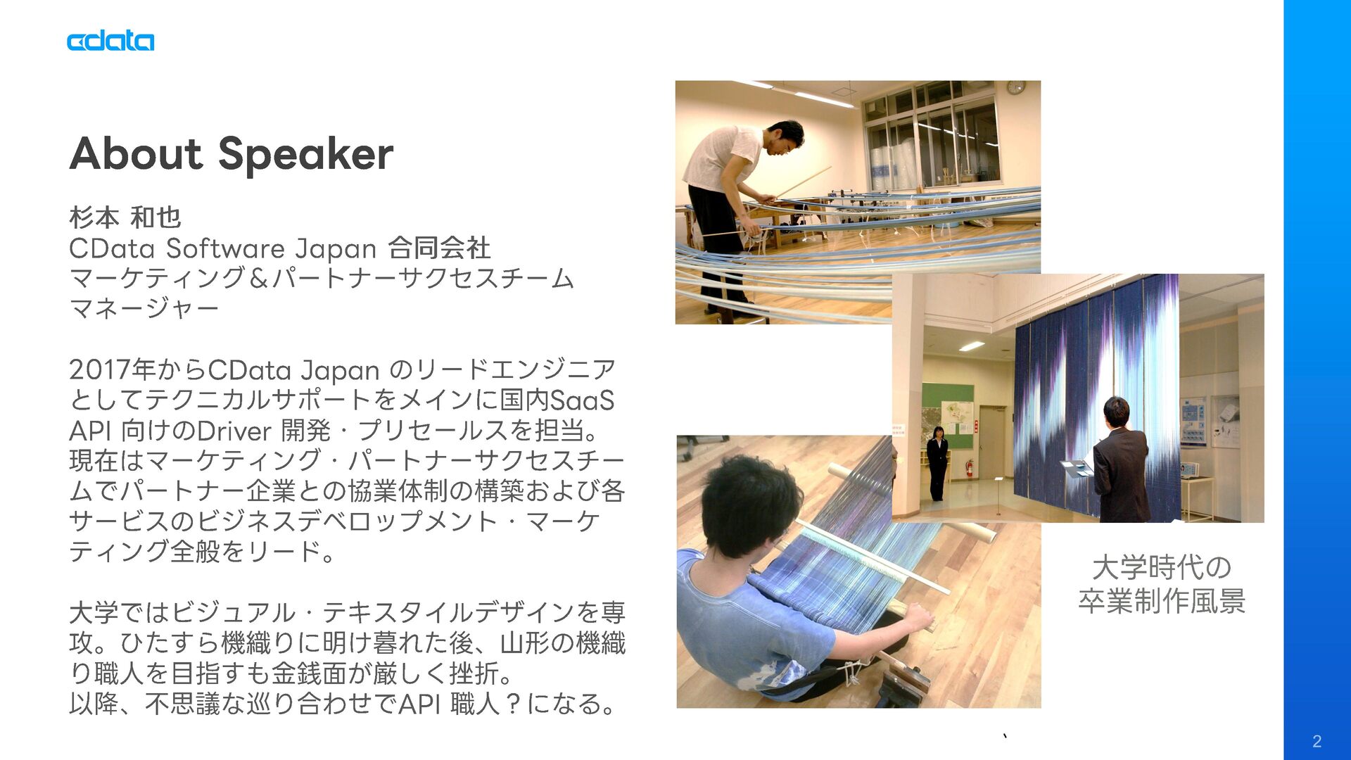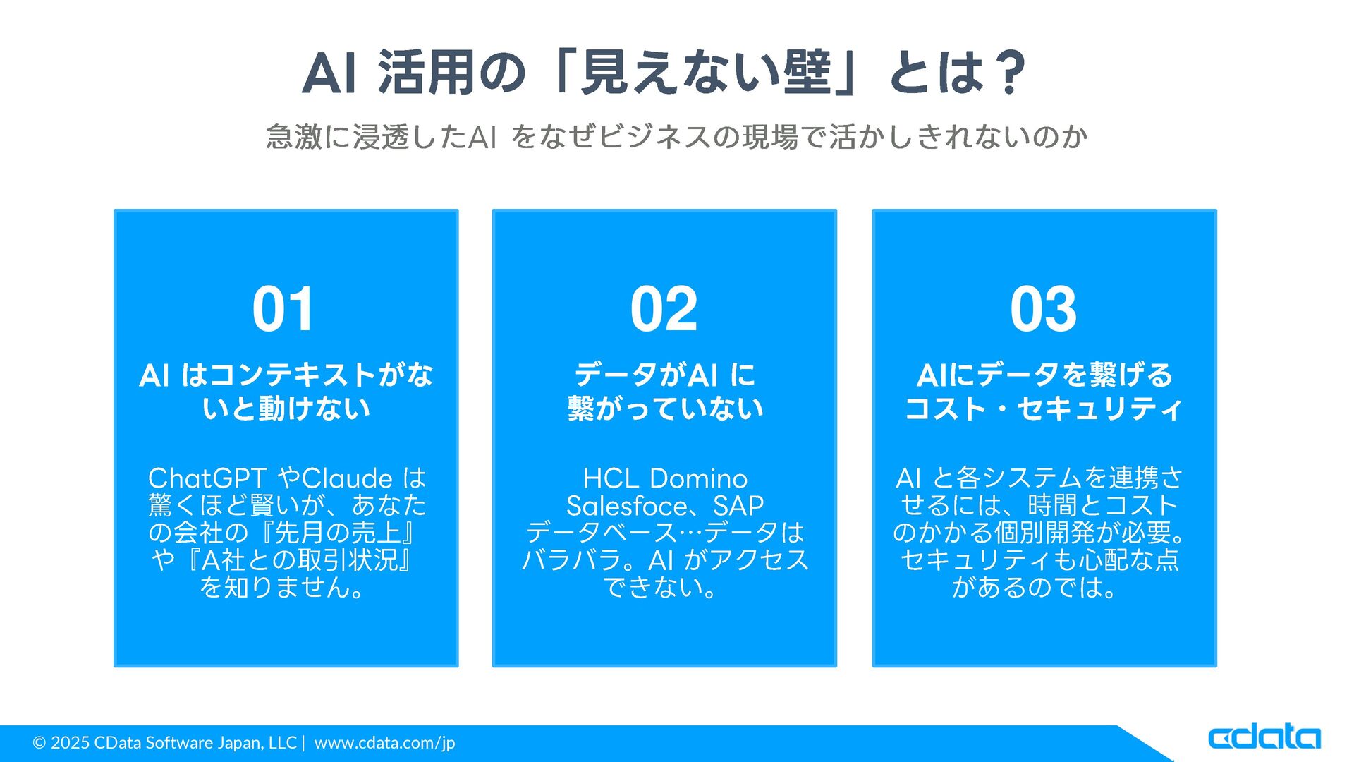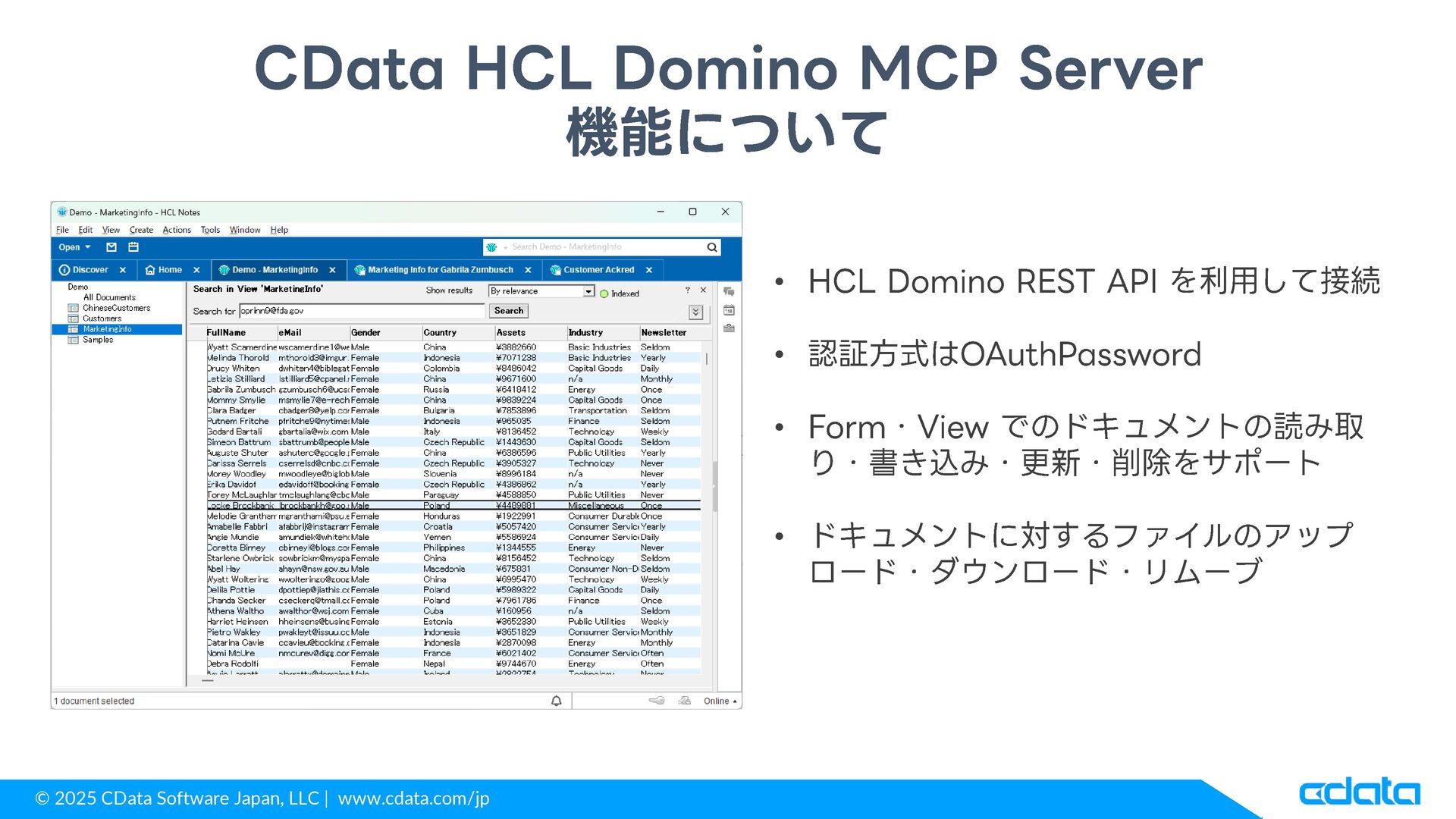 テーブル構造にマッピング • 非構造化データからスキーマ を自動検出 • 標準SQLでのデータアクセス を可能に • フルCRUDを実現 • JOIN / フィルタリングや集 計関数にも対応 • アプリ/ツールの標準対応イン ターフェースとして接続 • 各種プラットフォームが提供す る高度なフレームワーク活用 が可能 • ファイアウォールやプロキシな どのネットワーク機能に標準 対応 • 各種認証・ログ管理等のエ ンタープライズレベルの要求 を提供 テーブル化 (メタデータ付与) 標準SQL クエリエンジン 標準インターフェース 認証 / 管理機能
