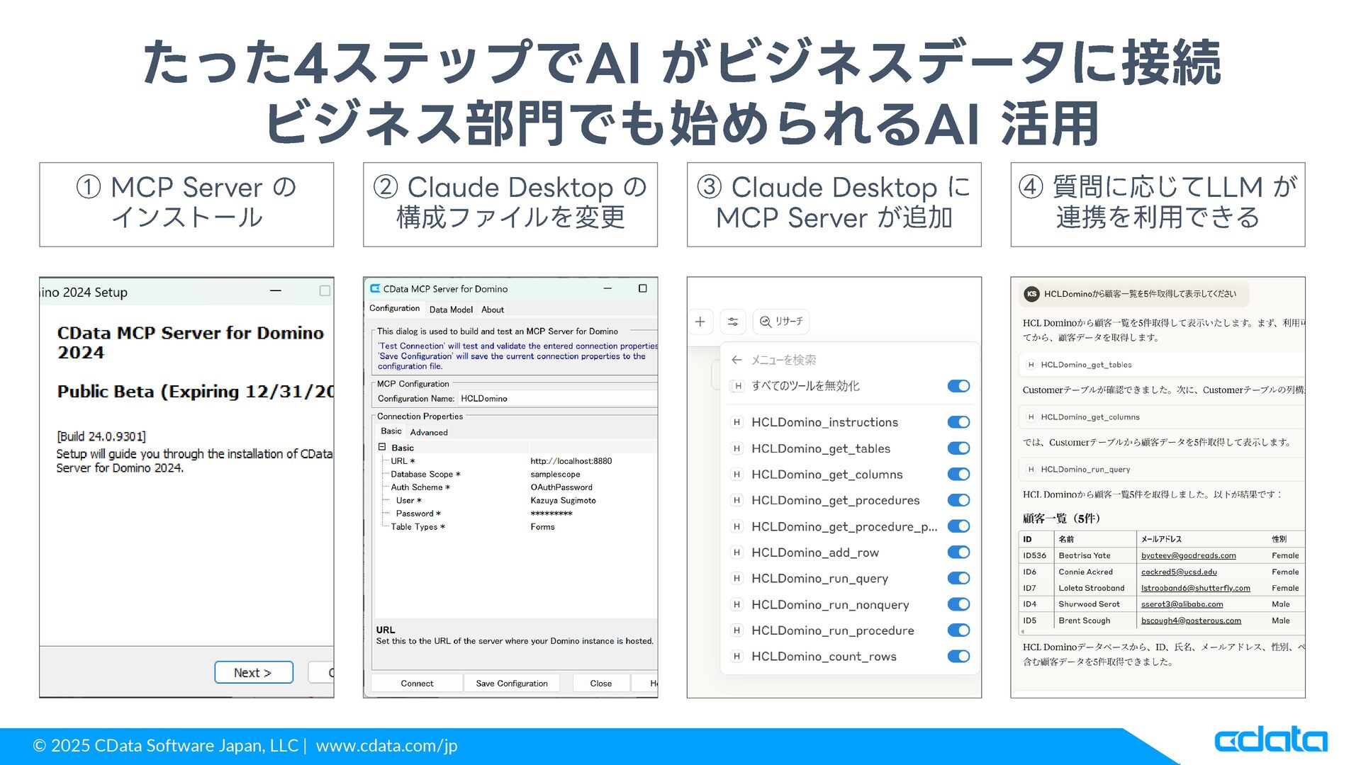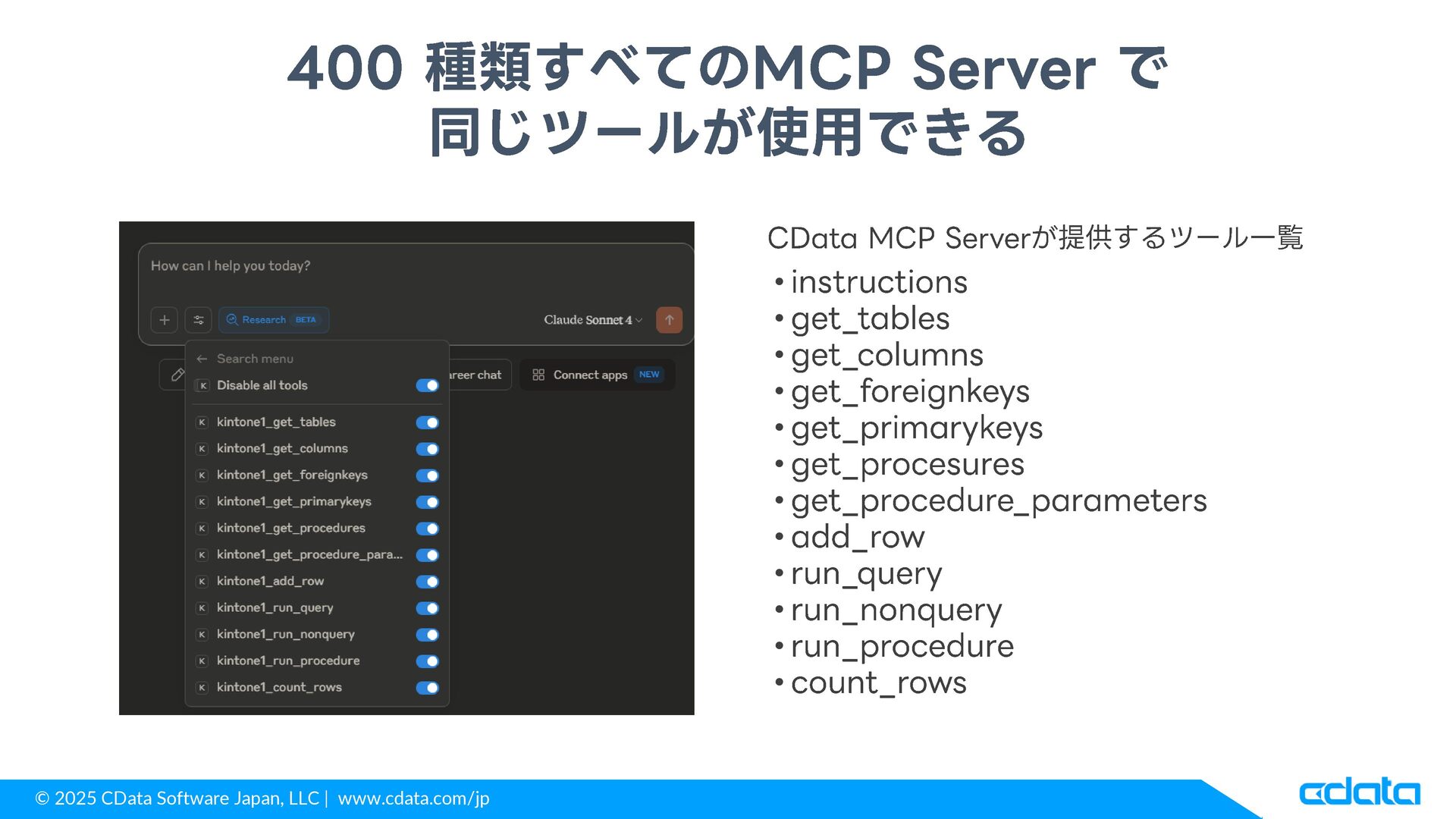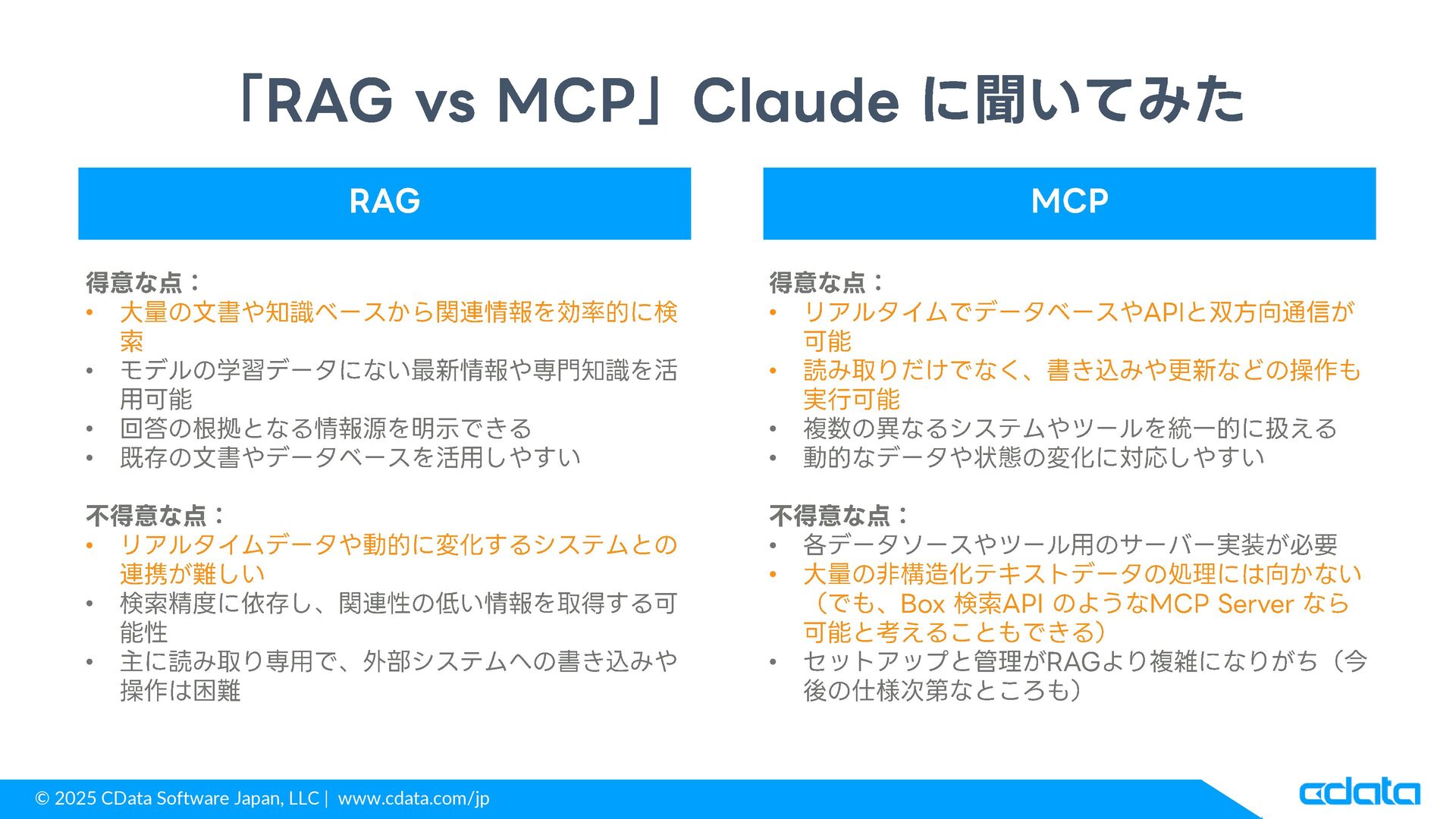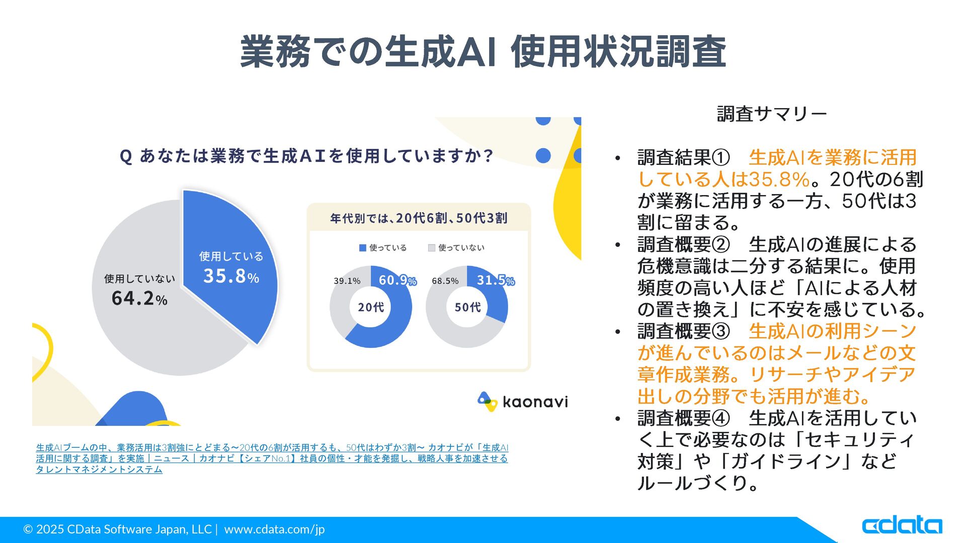 テーブル構造にマッピング • 非構造化データからスキーマ を自動検出 • 標準SQLでのデータアクセス を可能に • フルCRUDを実現 • JOIN / フィルタリングや集 計関数にも対応 • アプリ/ツールの標準対応イン ターフェースとして接続 • 各種プラットフォームが提供す る高度なフレームワーク活用 が可能 • ファイアウォールやプロキシな どのネットワーク機能に標準 対応 • 各種認証・ログ管理等のエ ンタープライズレベルの要求 を提供 テーブル化 (メタデータ付与) 標準SQL クエリエンジン 標準インターフェース 認証 / 管理機能