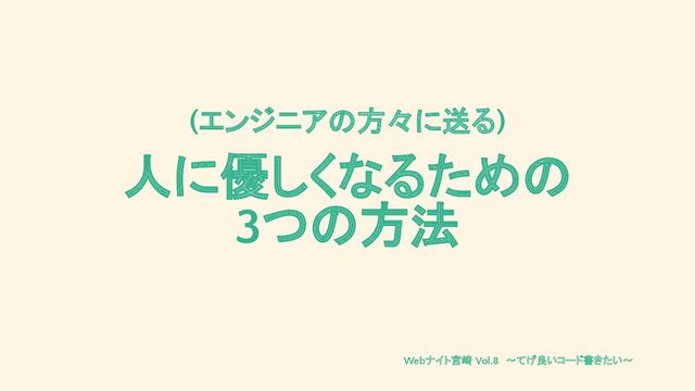 (エンジニアの方々に送る) 人に優しくなるための 3つの方法 Webナイト宮崎 Vol.8 ~てげ良いコード書きたい~