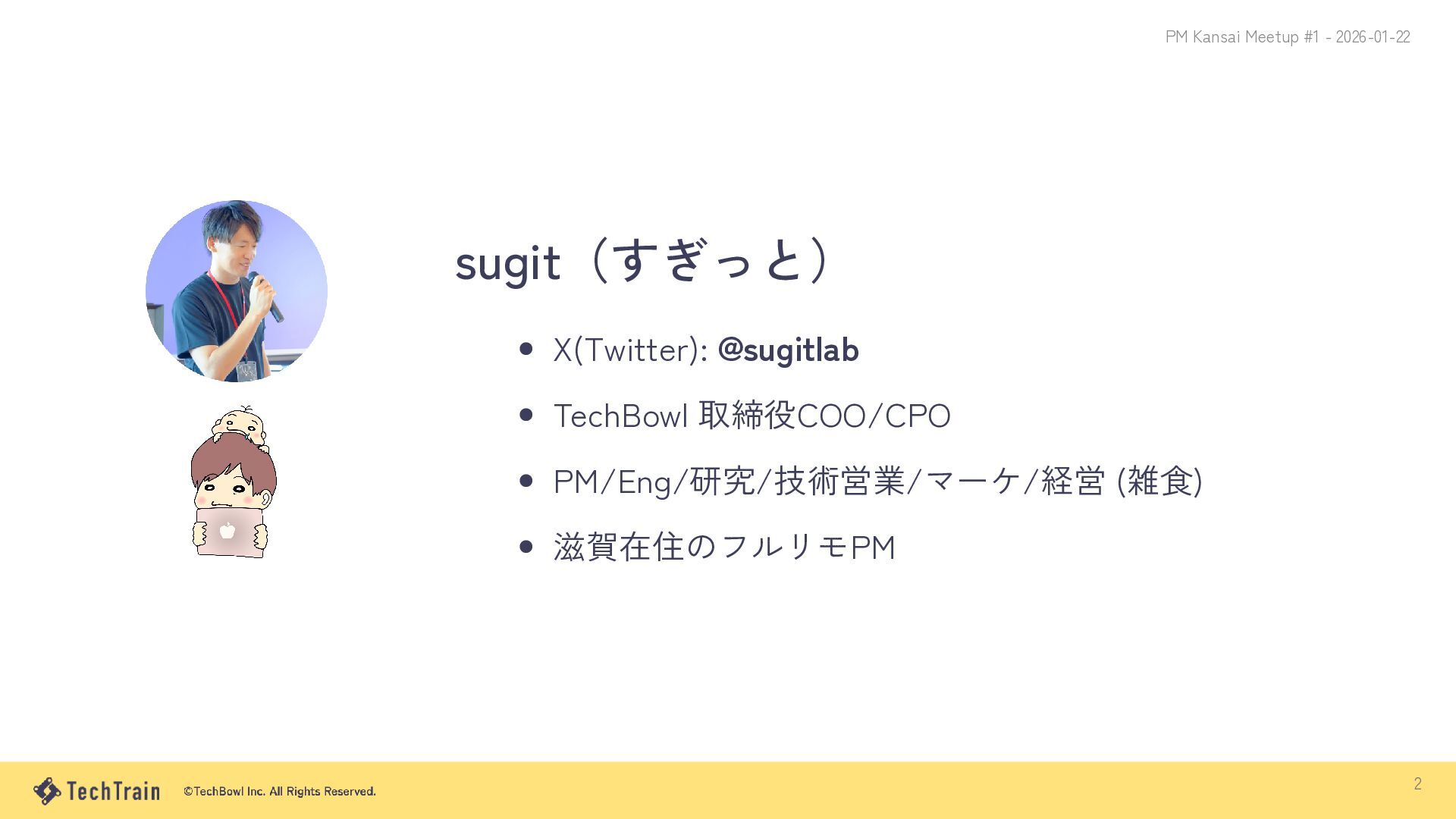 sugit(すぎっと) X(Twitter): @sugitlab TechBowl 取締役COO/CPO PM/Eng/研究/技術営業/マーケ/経営 (雑食) 滋賀在住のフルリモPM PM Kansai