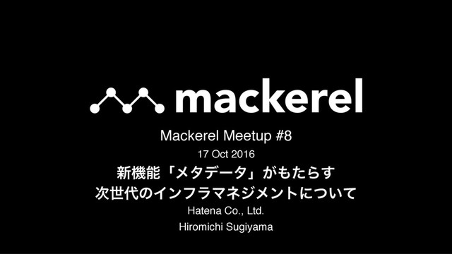 Mackerel Meetup #8 17 Oct 2016 ৽ػೳʮϝλσʔλʯ͕ͨΒ͢ ࣍ੈͷΠϯϑϥϚωδϝϯτʹ͍ͭͯ Hatena Co.,