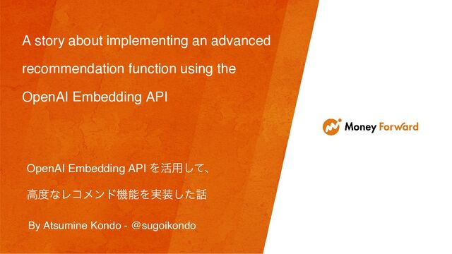 1. OpenAI Embedding API Λ׆༻ͯ͠ɺ ߴ౓ͳϨίϝϯυػೳΛ࣮૷ͨ͠࿩ By Atsumine Kondo - @sugoikondo