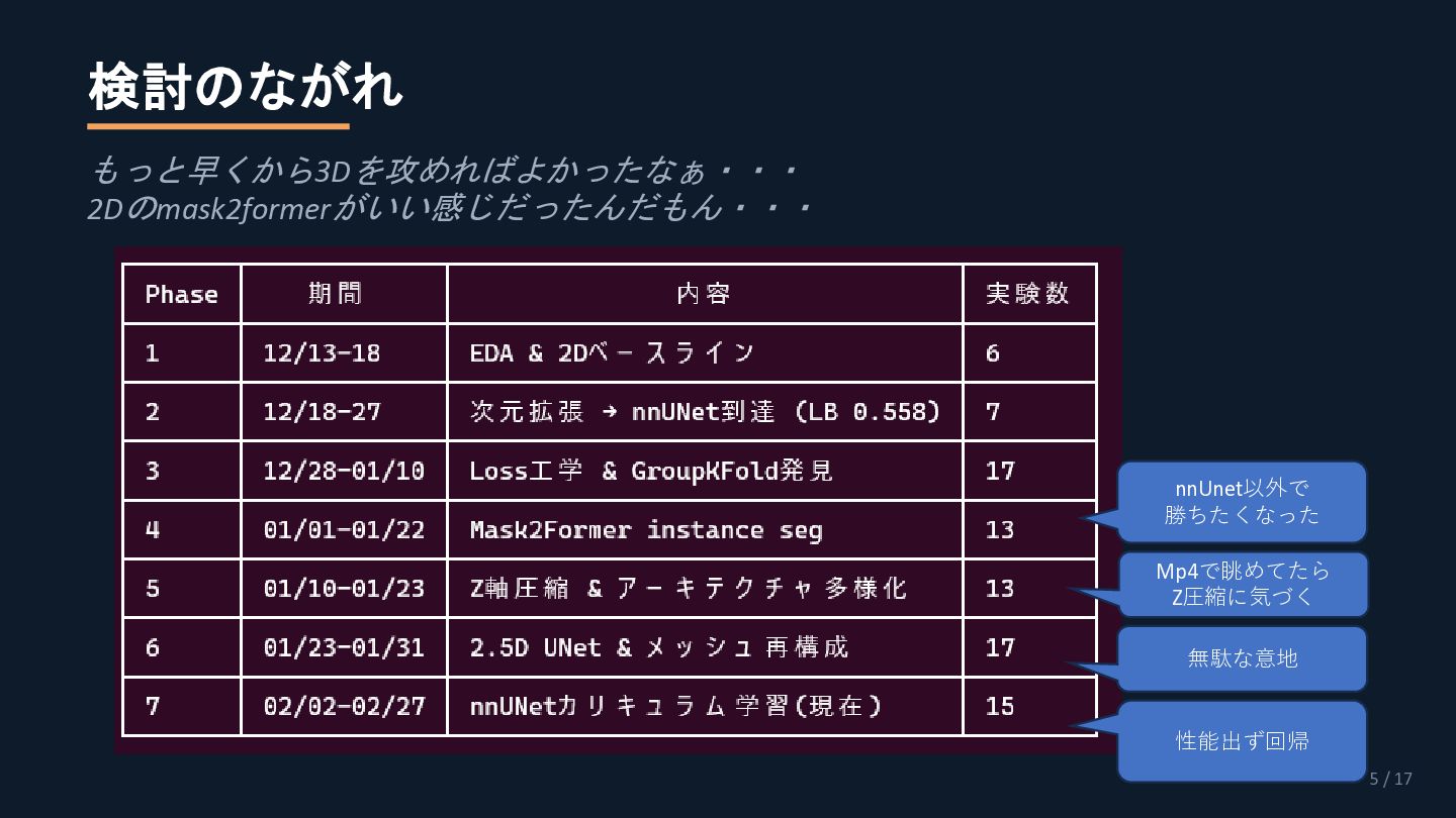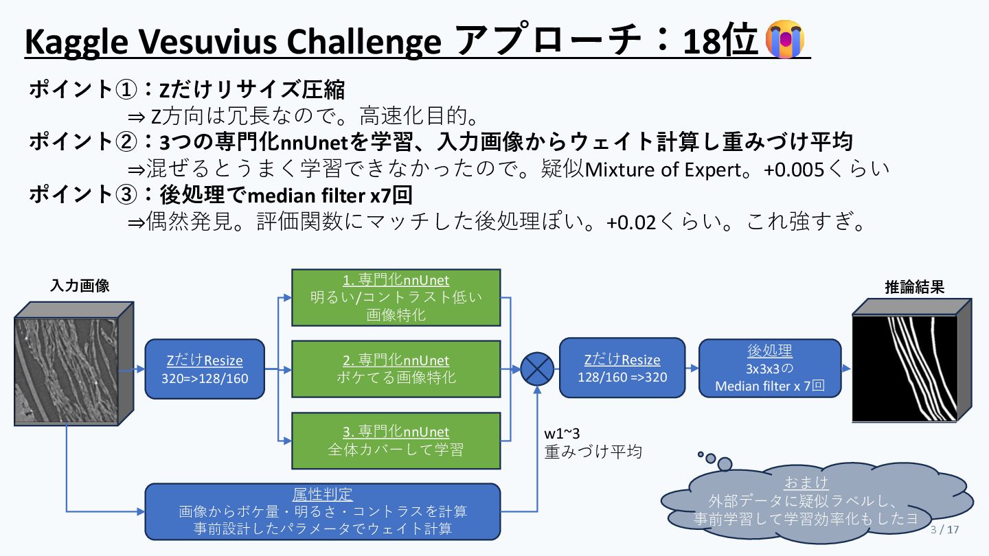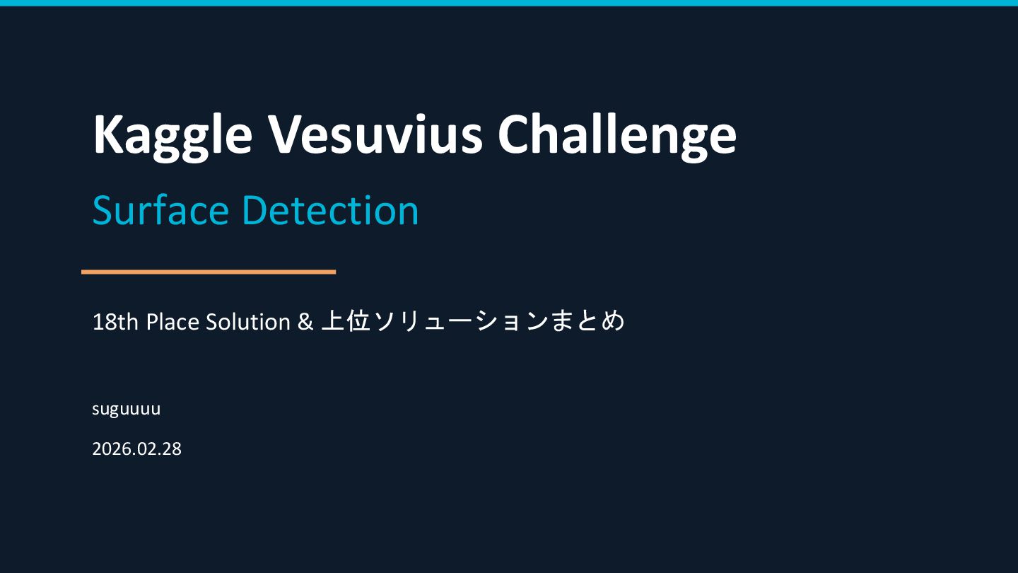 なんかミスってたら修正します。claude codeに結構頼ったので。 https://www.kaggle.com/competitions/vesuvius-challenge-surface-detection