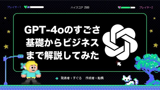 GPT GPT-4oのすごさ 基礎からビジネス まで解説してみた プレイヤー2 プレイヤー1 発表者:すぐる ハイスコア 2500 作成者:船橋