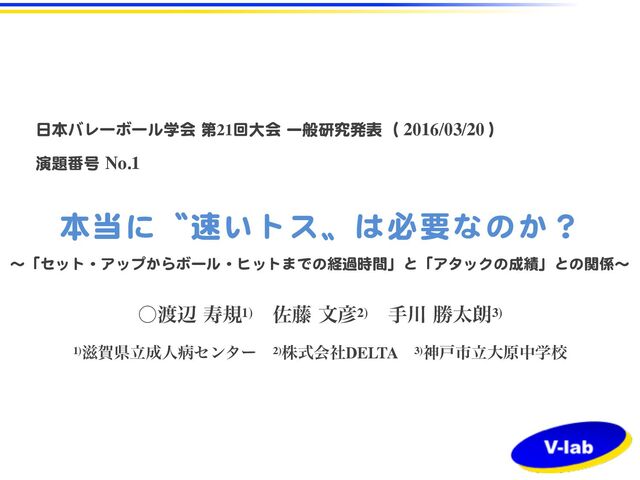 日本バレーボール学会 第21回大会 一般研究発表(2016/03/20)にて、発表したスライドです。 (バレーボール研究, 18(1), 58, 2016) http://jsvr.org/archives/pdf/issue/18/jsvr18pp58-86.pdf