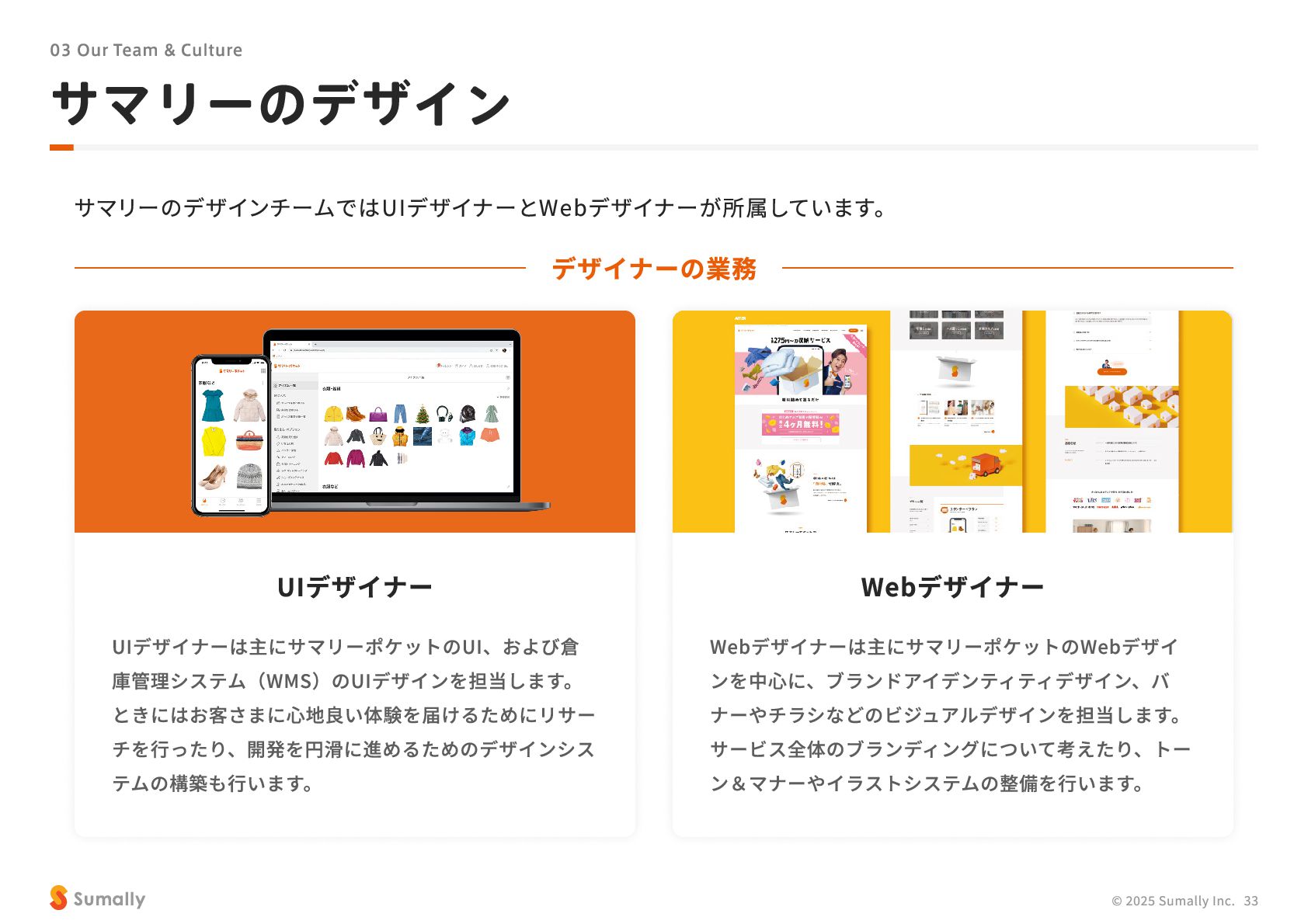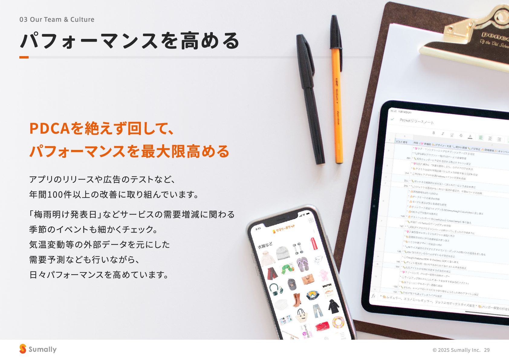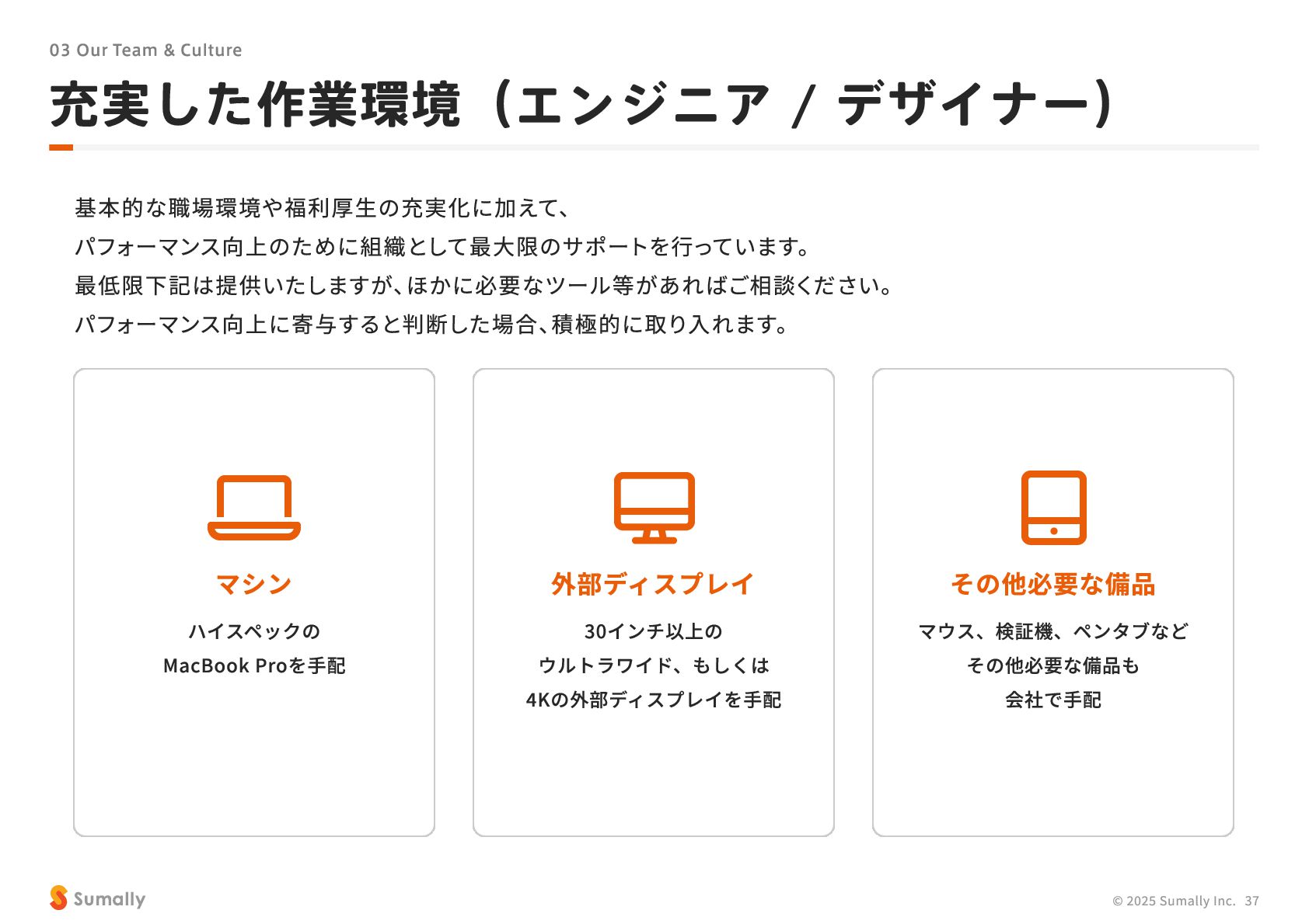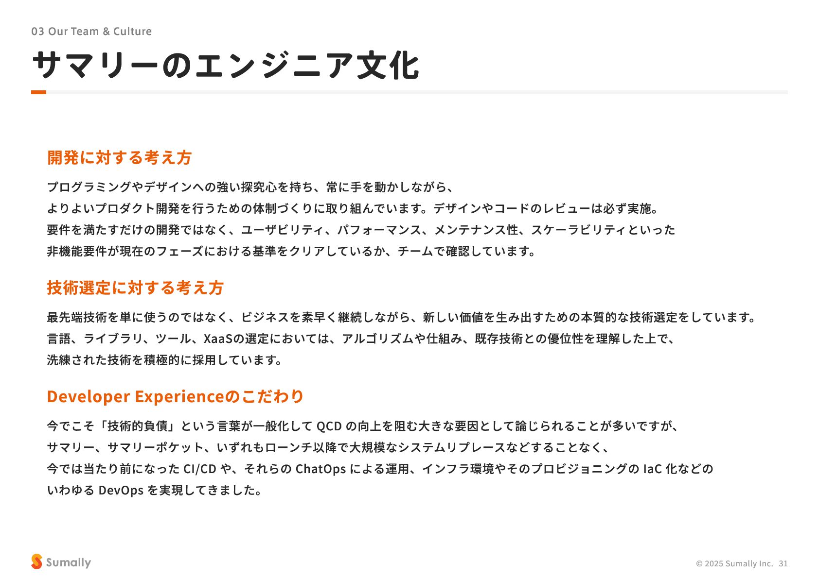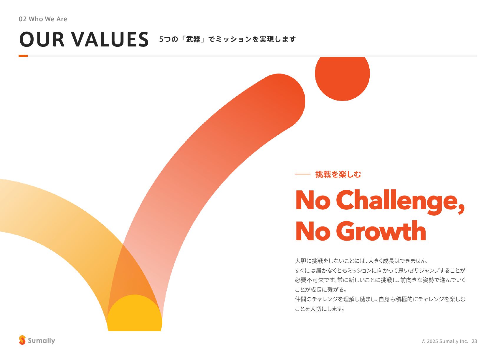 『所有』 のあり方をアップデートする」 に共感し、 5つのバリューを体現しながらミッション達成に向けて進んでいく ことができる 自走できる 自身で考え課題を発見し行動できる 課題解決できる 問題や課題を整理 ・ 定義し、 他メンバーを活用することも含め適切に対処できる 成長意欲がある フィードバックを丁寧に受け止めたり、 先輩の行動から学んだり、 自身で改善プロセスを組み立てて実行できる Customer Voice, Our Compass Move Fast, Fail Fast One Team, One Goal No Challenge, No Growth Shu, Ha, Ri Wanted! © 2025 Sumally Inc. 50