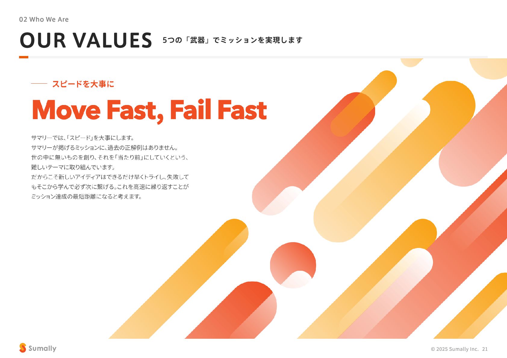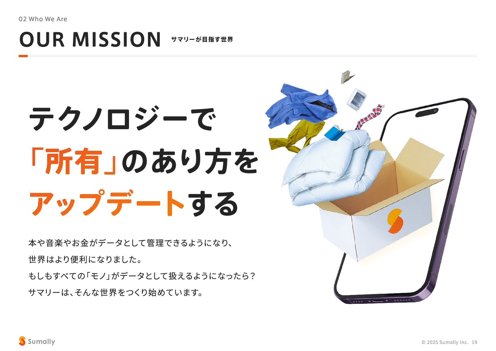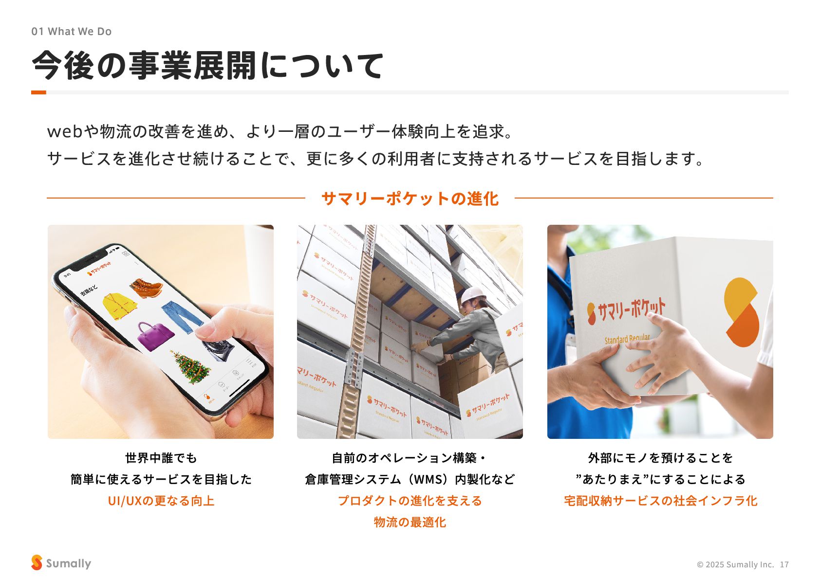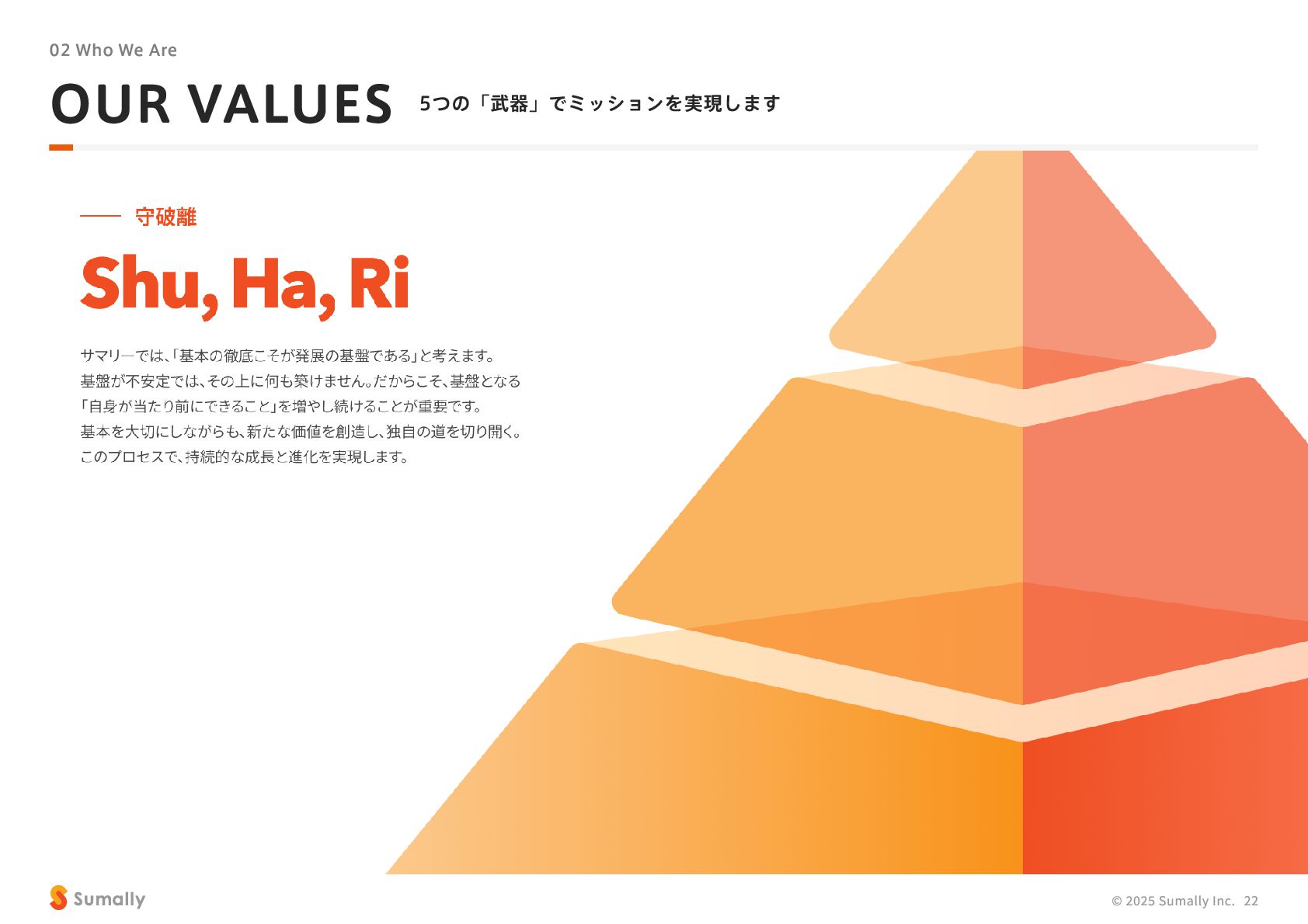 『所有』 のあり方をアップデートする」 に共感し、 5つのバリューを体現しながらミッション達成に向けて進んでいく ことができる 自走できる 自身で考え課題を発見し行動できる 課題解決できる 問題や課題を整理 ・ 定義し、 他メンバーを活用することも含め適切に対処できる 成長意欲がある フィードバックを丁寧に受け止めたり、 先輩の行動から学んだり、 自身で改善プロセスを組み立てて実行できる Customer Voice, Our Compass Move Fast, Fail Fast One Team, One Goal No Challenge, No Growth Shu, Ha, Ri Wanted! © 2025 Sumally Inc. 50