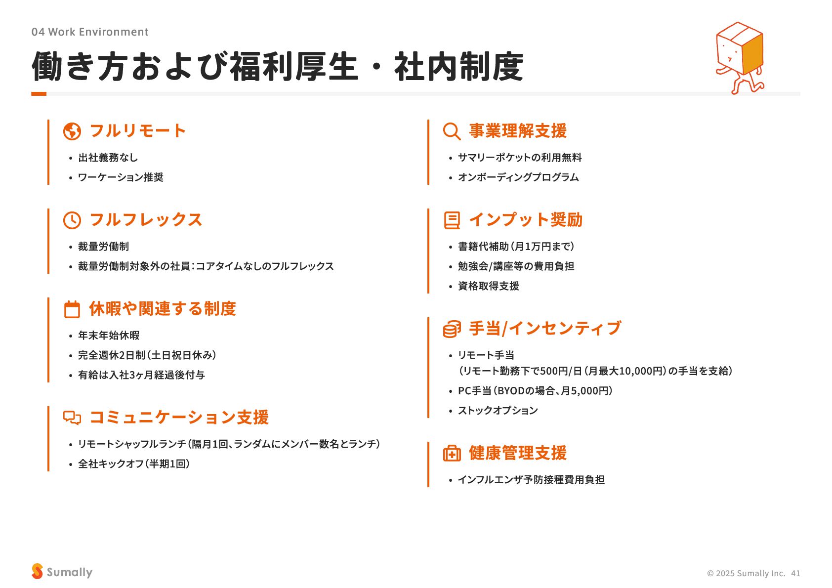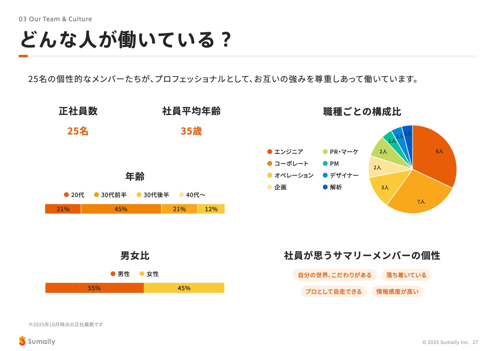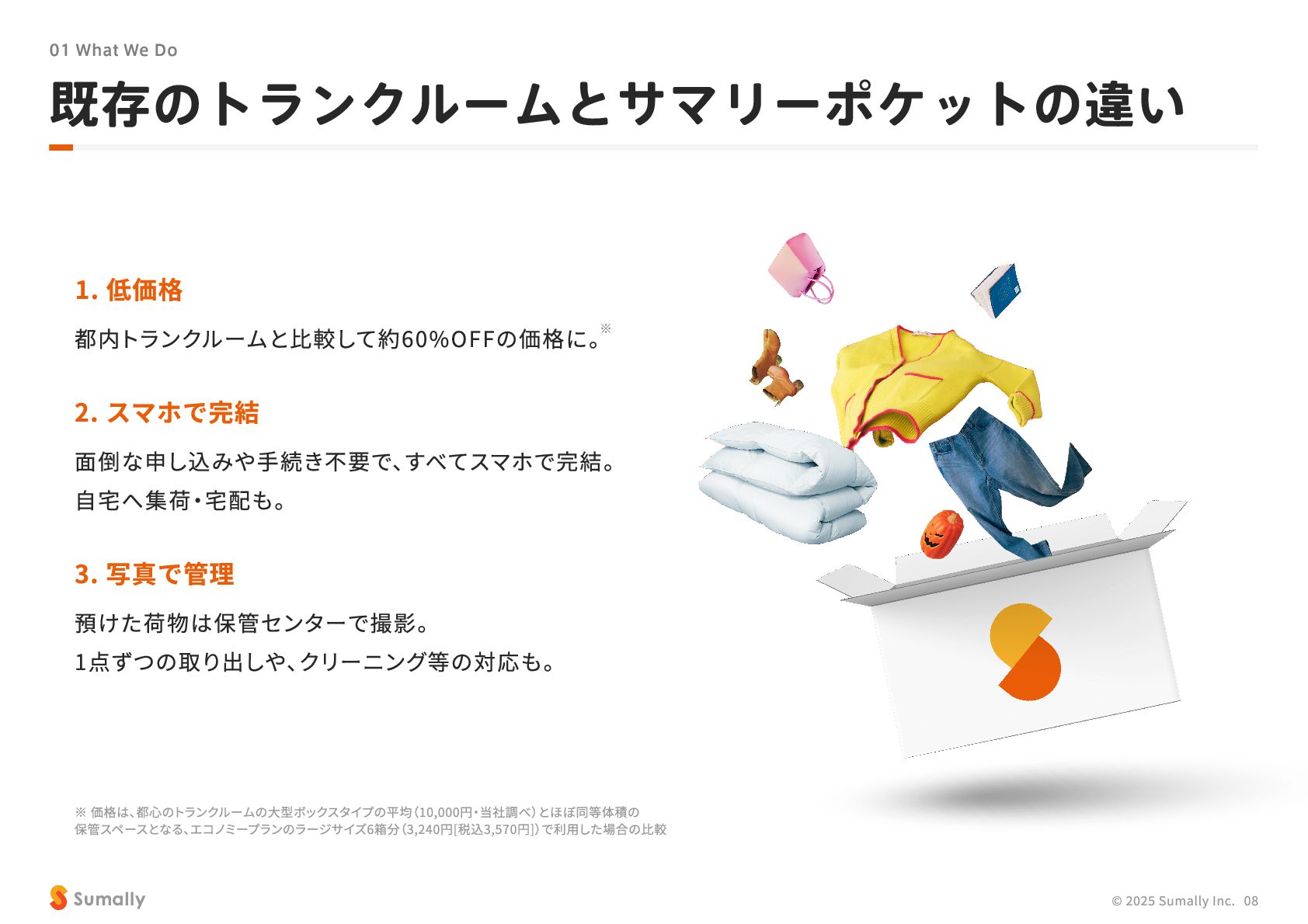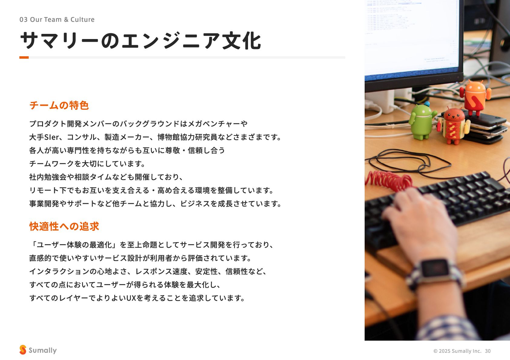 『所有』 のあり方をアップデートする」 に共感し、 5つのバリューを体現しながらミッション達成に向けて進んでいく ことができる 自走できる 自身で考え課題を発見し行動できる 課題解決できる 問題や課題を整理 ・ 定義し、 他メンバーを活用することも含め適切に対処できる 成長意欲がある フィードバックを丁寧に受け止めたり、 先輩の行動から学んだり、 自身で改善プロセスを組み立てて実行できる Customer Voice, Our Compass Move Fast, Fail Fast One Team, One Goal No Challenge, No Growth Shu, Ha, Ri Wanted! © 2025 Sumally Inc. 50