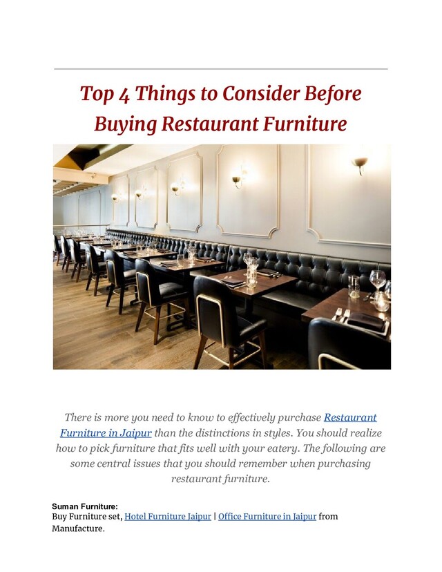 There is more you need to know to effectively purchase Best Restaurant Furniture in Jaipur than the distinctions in styles. You should realize how to pick furniture that fits well with your eatery. The following are some central issues that you should remember when purchasing restaurant furniture.