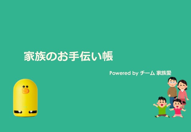 家族のお手伝い帳は、LINE Clovaと LINE Bot、ラズパイ&レシートプリンターを使って、子ども達が進んでお手伝いし続けてもうらための作品です。 家族のコミュニケーションを深めることが目的です。