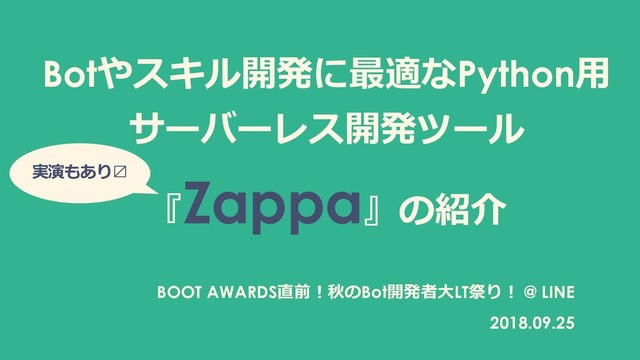 【東京】BOOT AWARDS直前!秋のBot開発者大LT祭り!(2018/09/25)で発表した資料です。