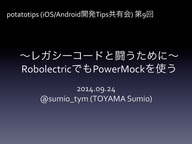 「【第9回】potatotips(iOS/Android開発Tips共有会)」の発表資料です。 Android Studio / Gradle で、RobolectricとPowerMockを併用する方法を説明しています。 設定さえしてしまえば、Android StudioでサクサクTDDできますので、ぜひお試しください!