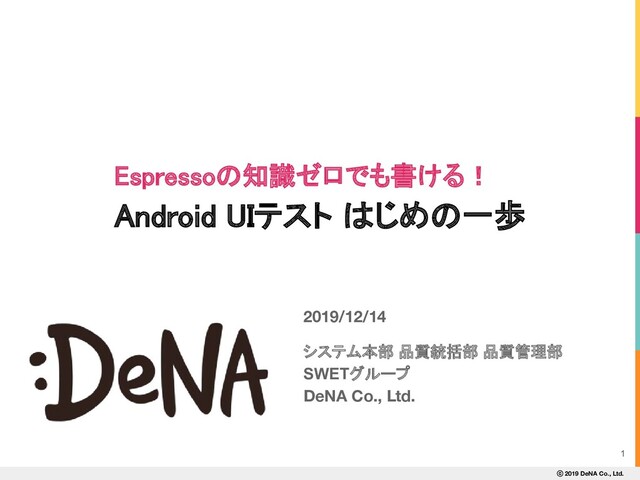 ⓒ 2019 DeNA Co., Ltd. 1-1. UIテストの特徴① ユニットテスト vs UIテスト 9 This image is reproduced from work created and shared by the Android Open Source Project and used according to terms described in the Creative Commons 2.5 Attribution License.