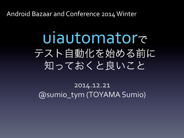uiautomatorͰ ςετࣗಈԽΛ࢝ΊΔલʹ ͓ͬͯ͘ͱྑ͍͜ͱ 2014.12.21 @sumio_tym (TOYAMA Sumio)