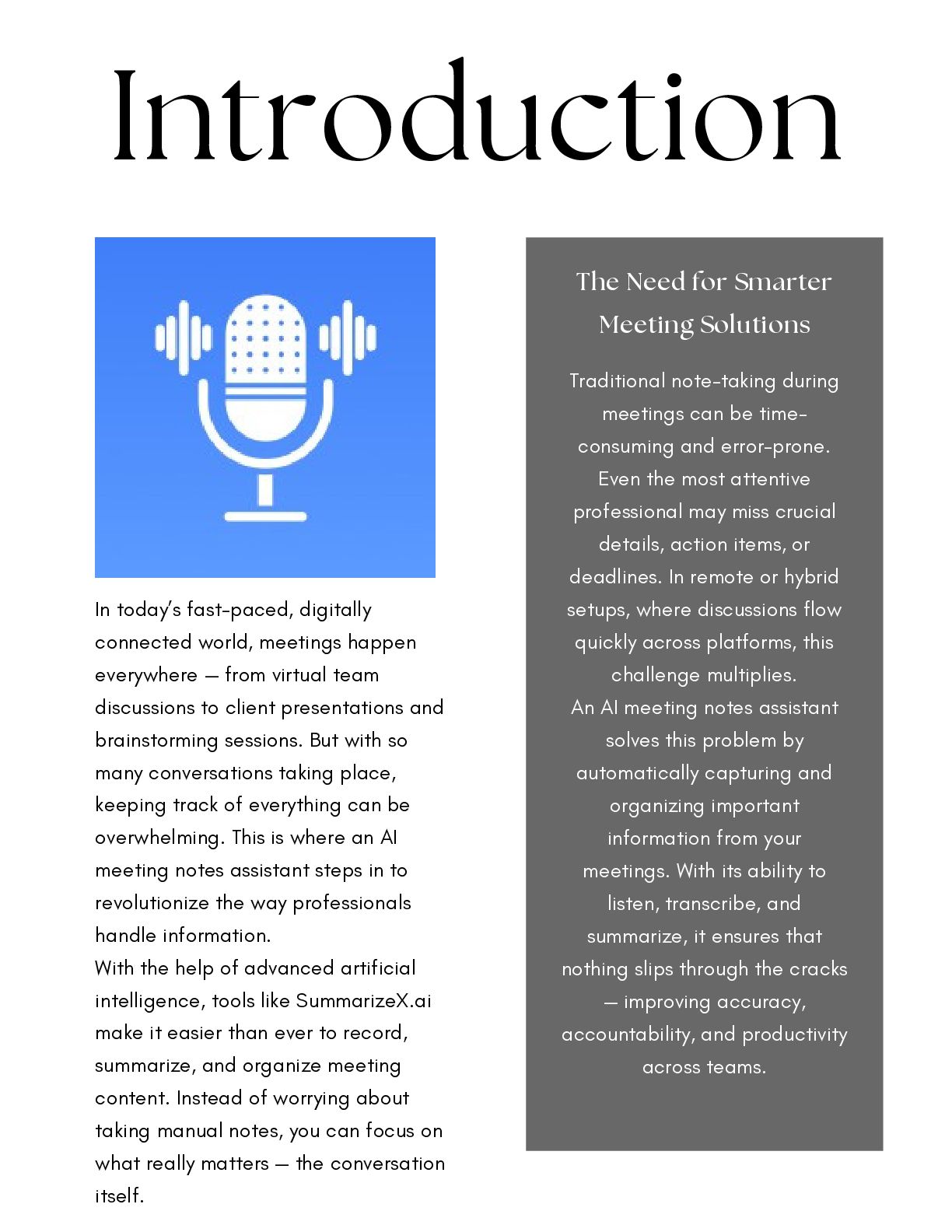 SummarizeX.ai is a cutting-edge platform that combines intelligent meeting transcription with smart summarization. Acting as your personal AI meeting notes assistant, it automatically listens to conversations, captures insights, and generates easy-to-read summaries.