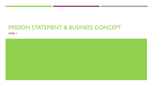 business through development of a mission statement and a solid business concept • Identify 2 -4 key tasks to begin the process of organizing the “dream” into actionable steps or processes