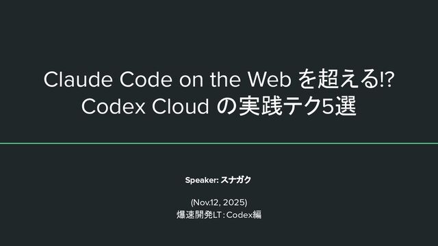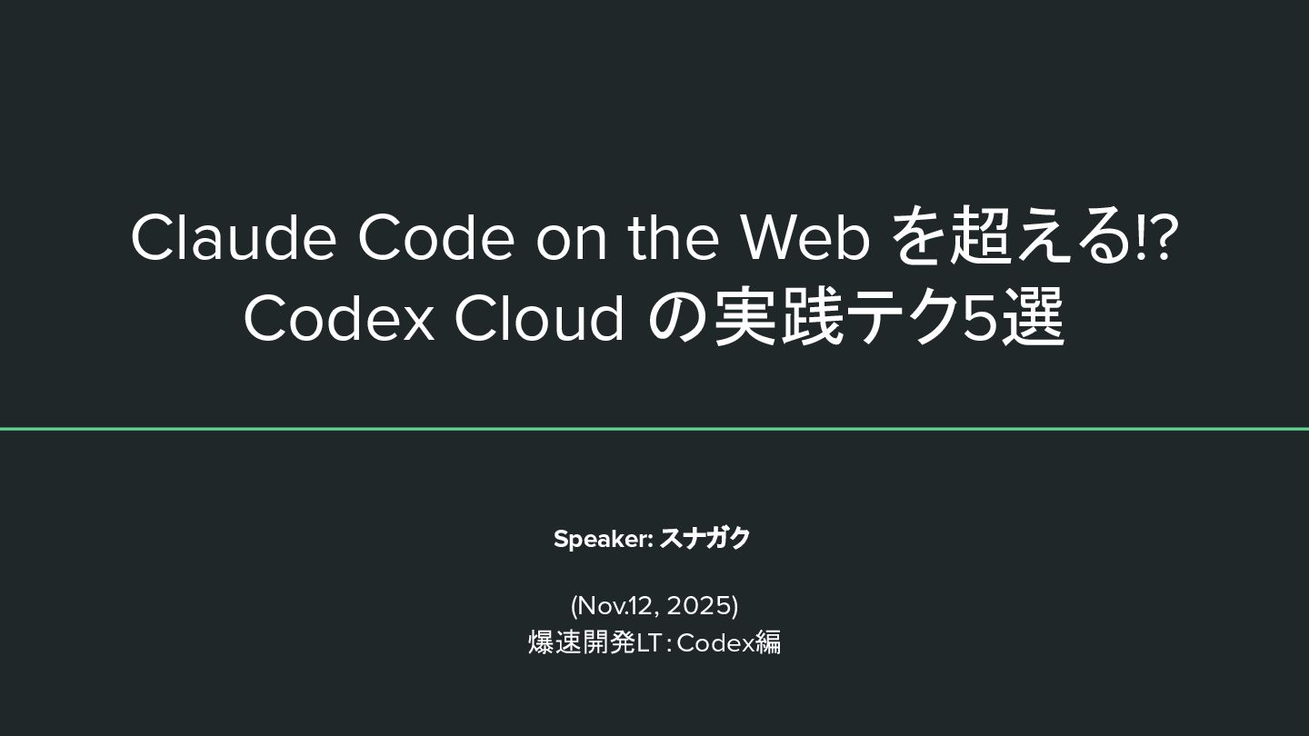 Speaker: スナガク (Nov.12, 2025) 爆速開発LT:Codex編 Claude Code on the Web