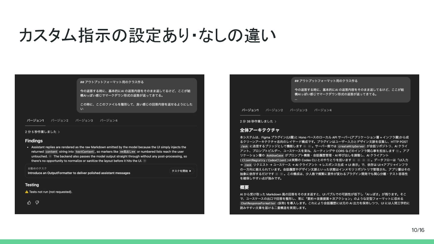 カスタム指示の設定あり・なしの違い 10/16
