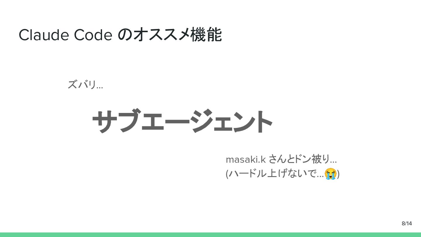 Claude Code のオススメ機能 ズバリ... サブエージェント masaki.k さんとドン被り… (ハードル上げないで...😭) 8/14
