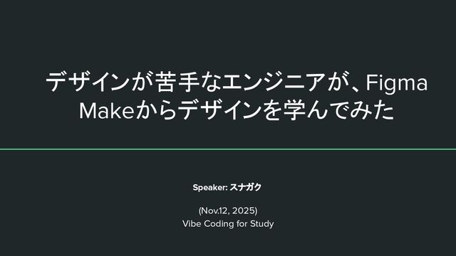 Speaker: スナガク (Nov.12, 2025) Vibe Coding for Study デザインが苦手なエンジニアが、Figma Makeからデザインを学んでみた