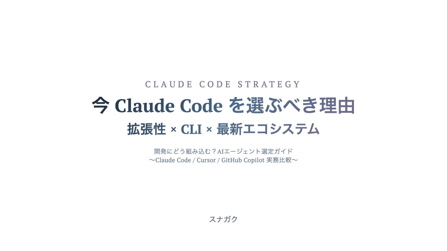 今 Claude Code を選ぶべき理由 拡張性 × CLI × 最新エコシステム
