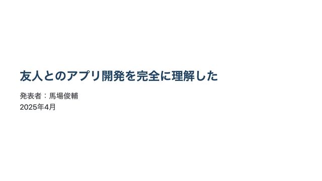 友人とのアプリ開発を完全に理解した 発表者:馬場俊輔 2025年4月