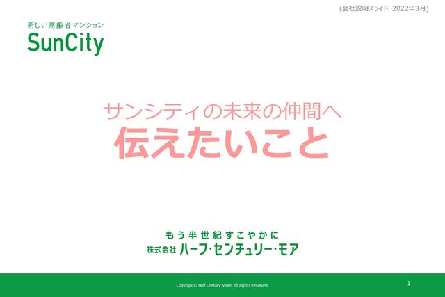 Copyright© Half Century More. All Rights Reserved. 1 サンシティの未来の仲間へ 伝えたいこと
