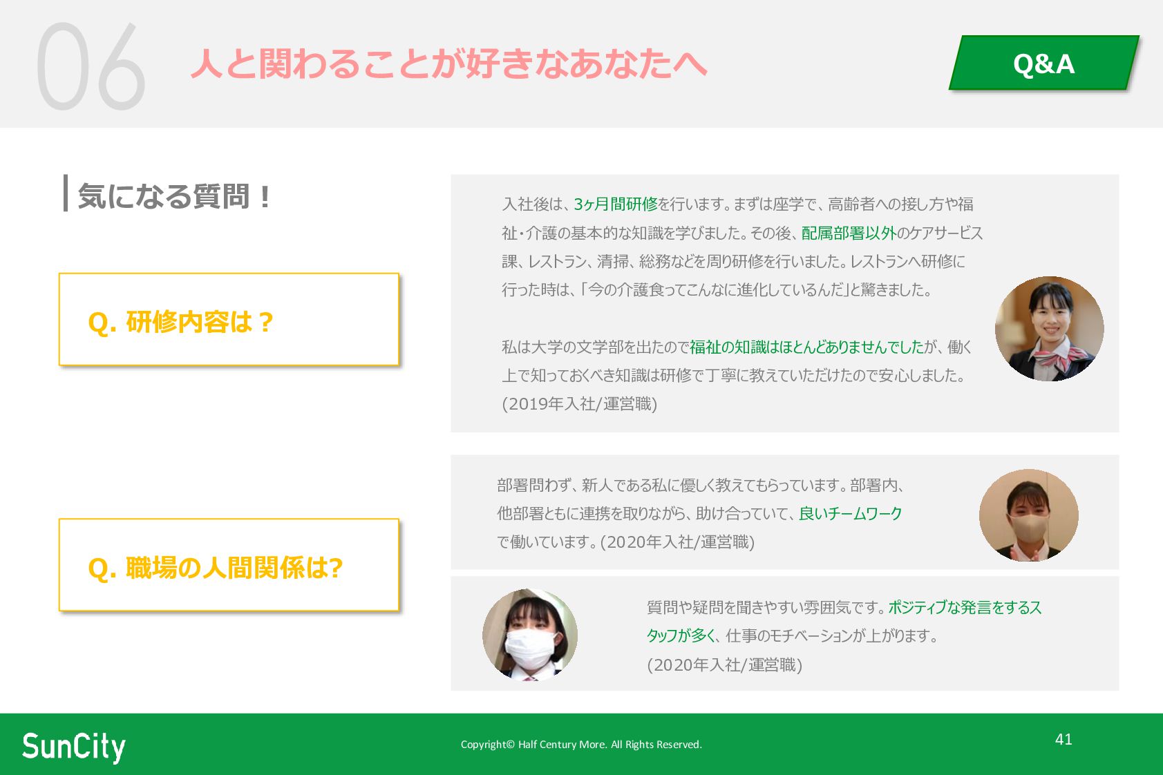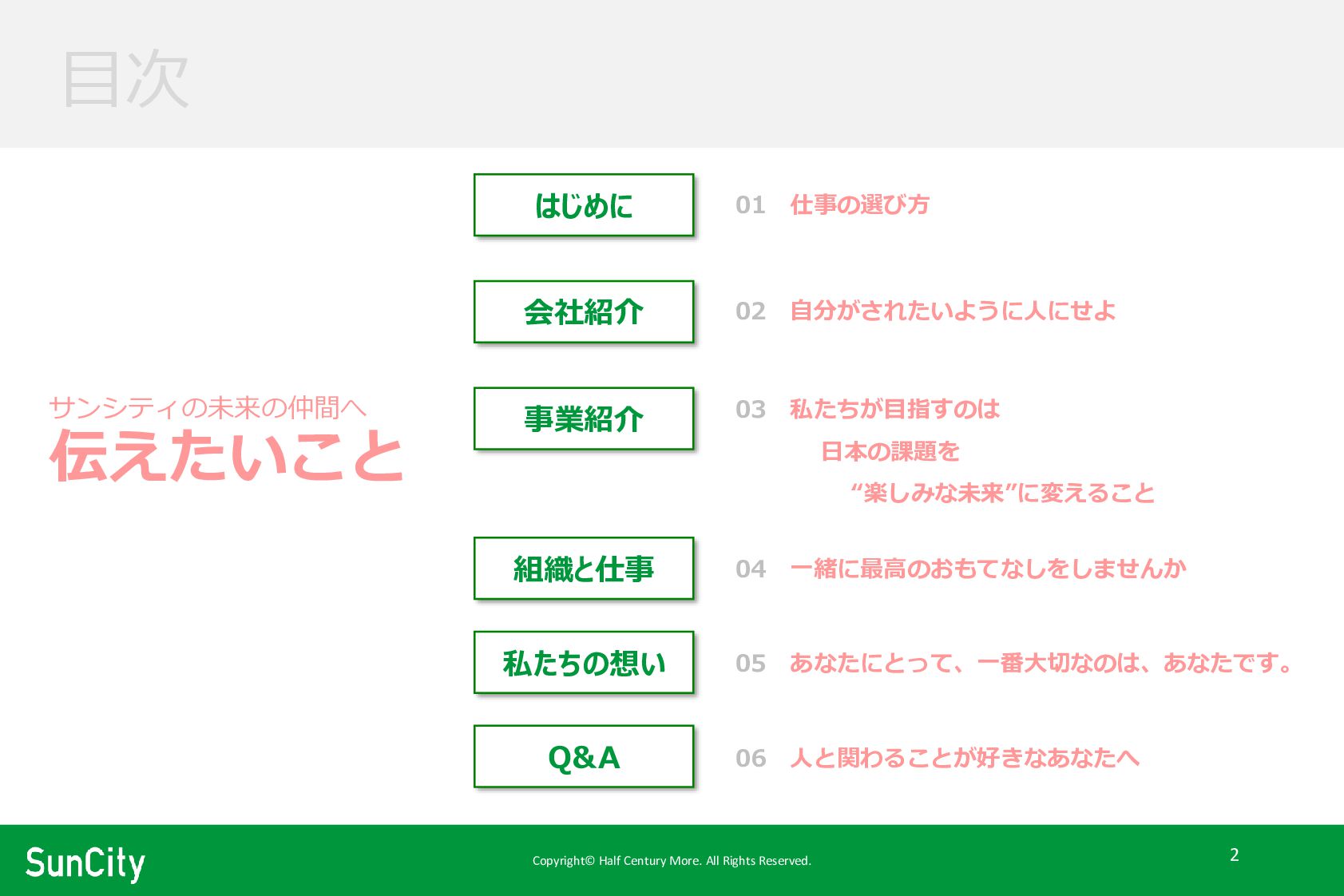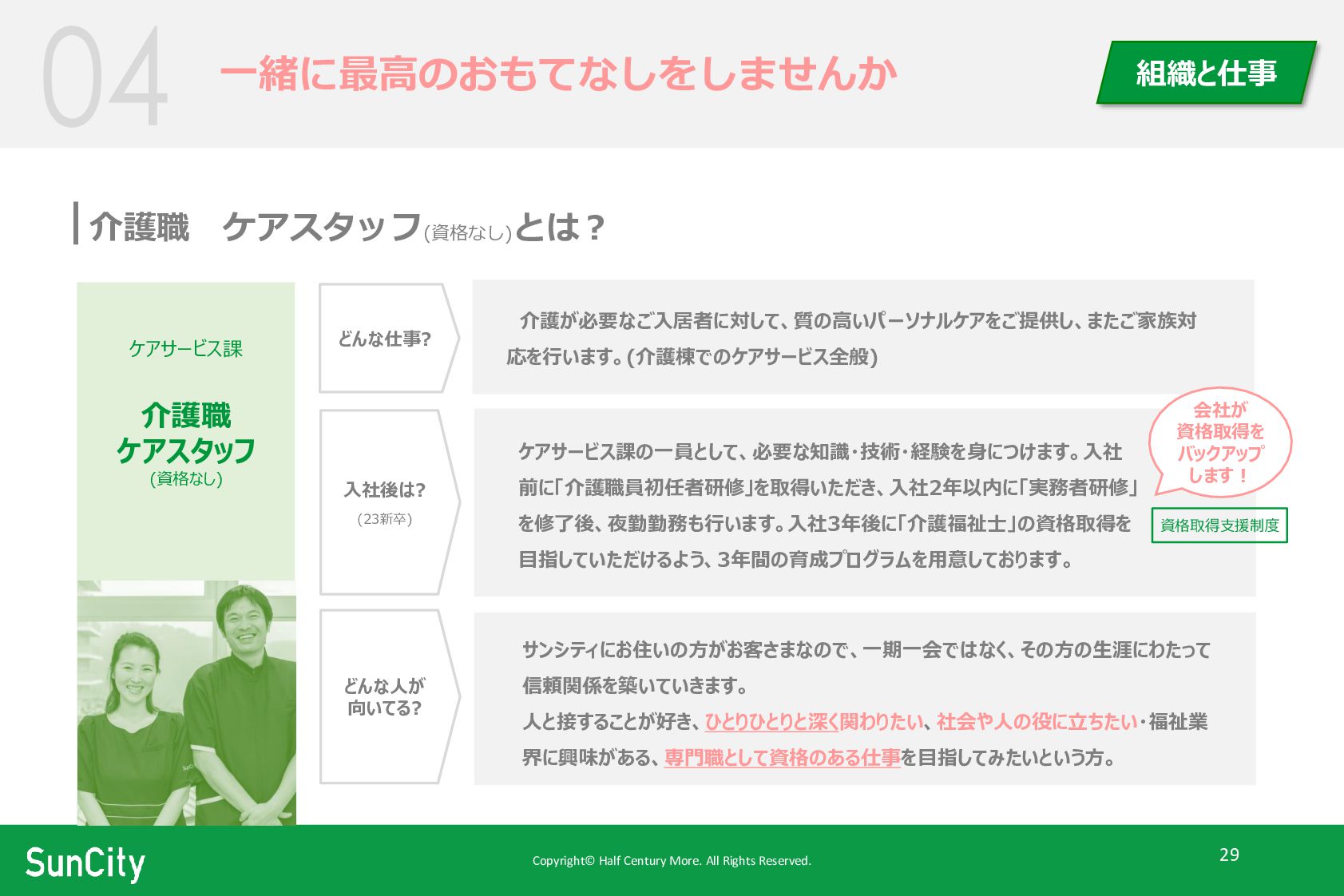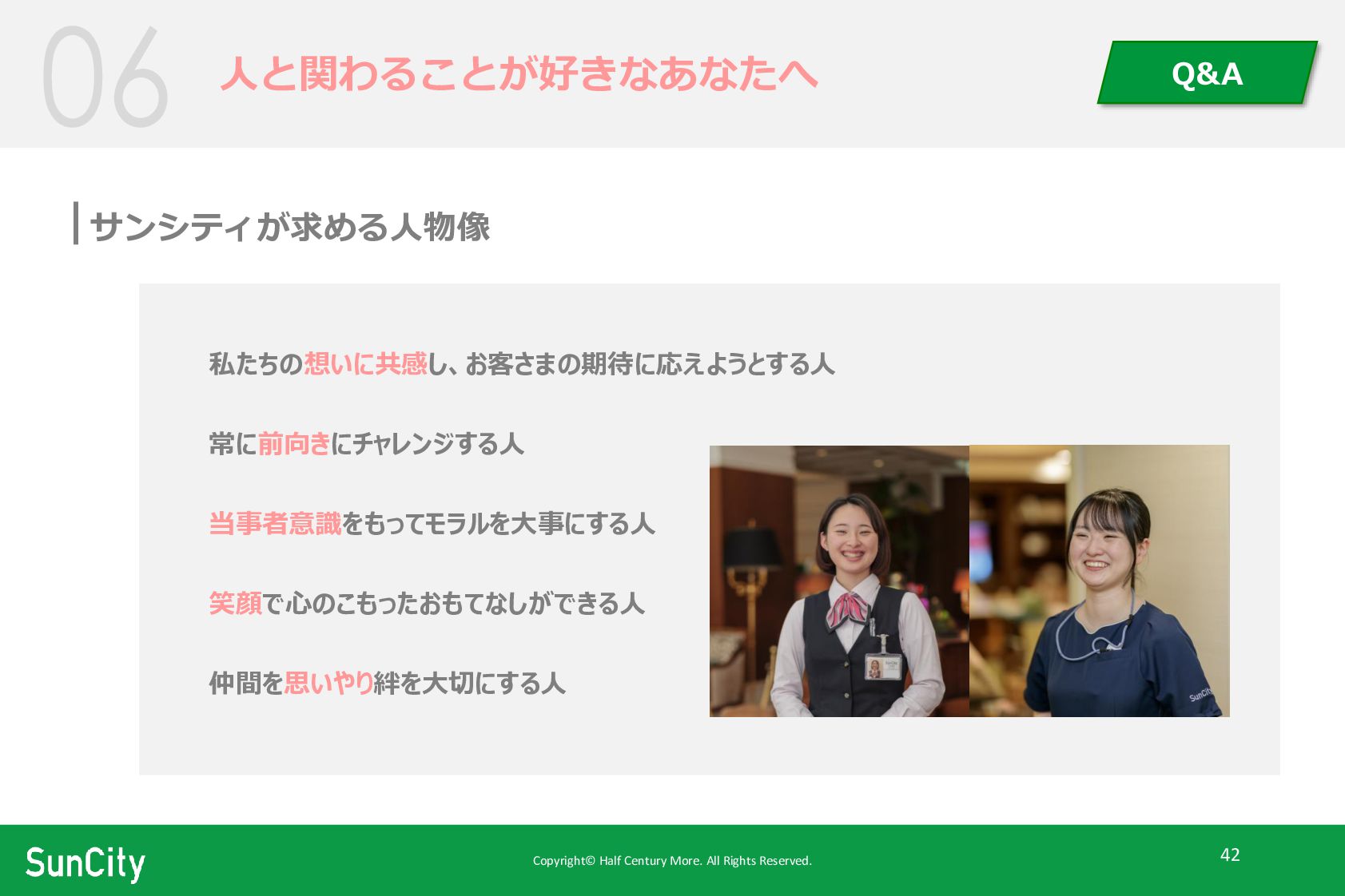 Copyright© Half Century More. All Rights Reserved. 42 サンシティが求める人物像 人と関わることが好きなあなたへ