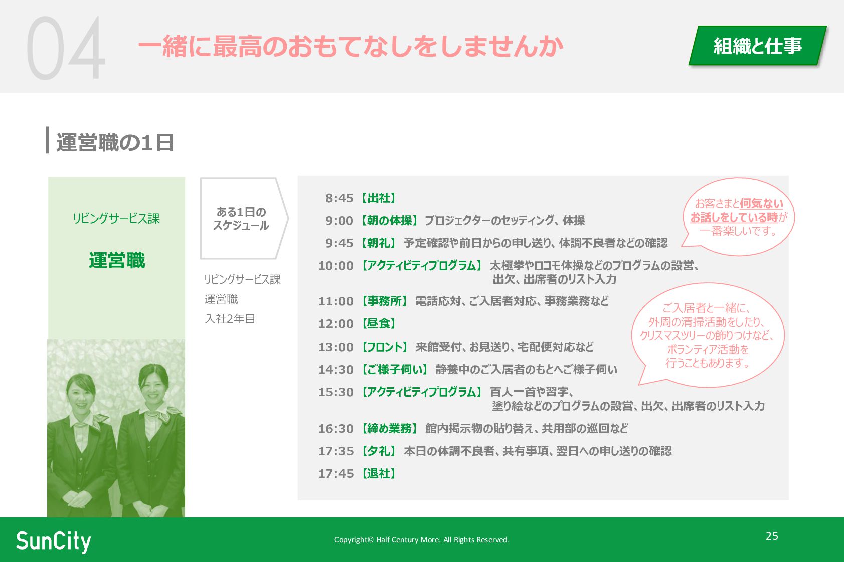 Copyright© Half Century More. All Rights Reserved. 25 一緒に最高のおもてなしをしませんか 組織と仕事