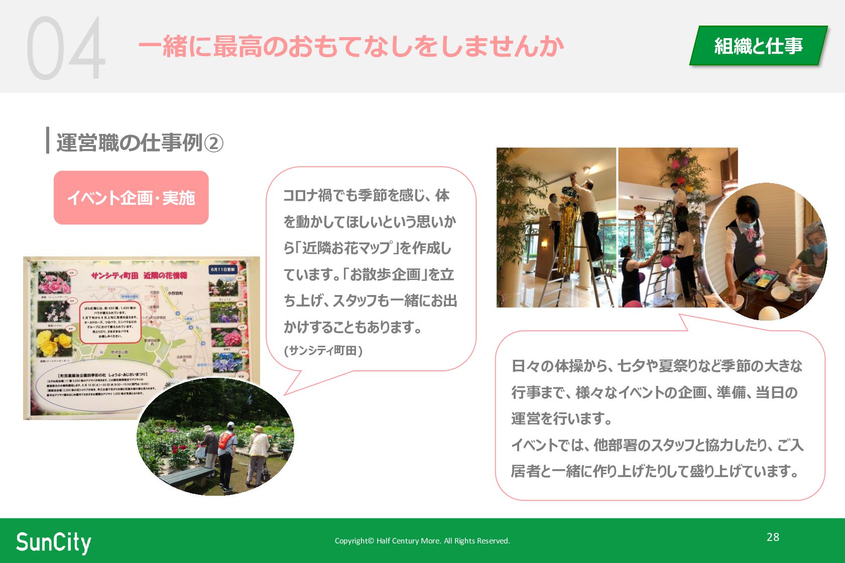 Copyright© Half Century More. All Rights Reserved. 28 一緒に最高のおもてなしをしませんか 組織と仕事