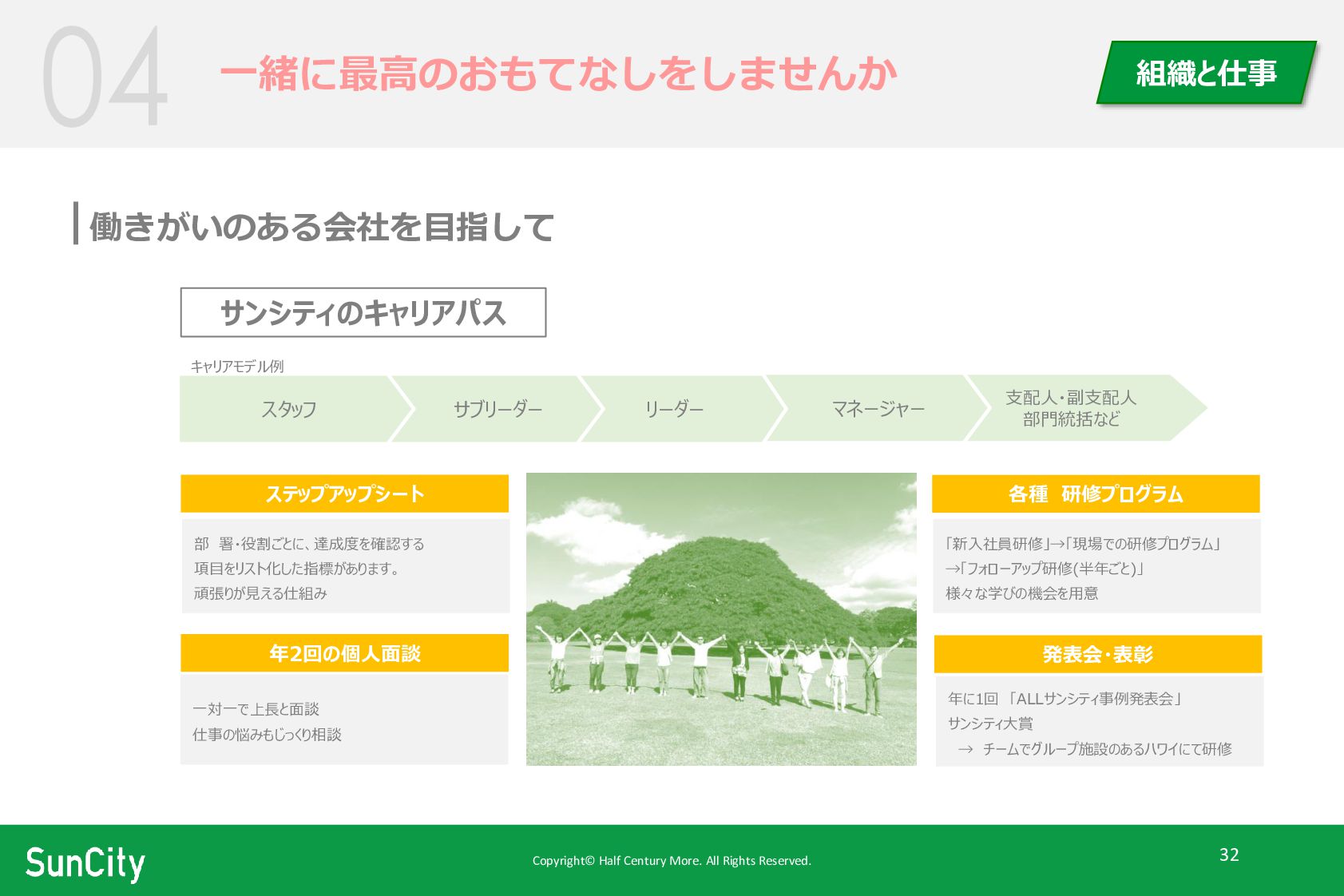 Copyright© Half Century More. All Rights Reserved. 32 一緒に最高のおもてなしをしませんか 組織と仕事