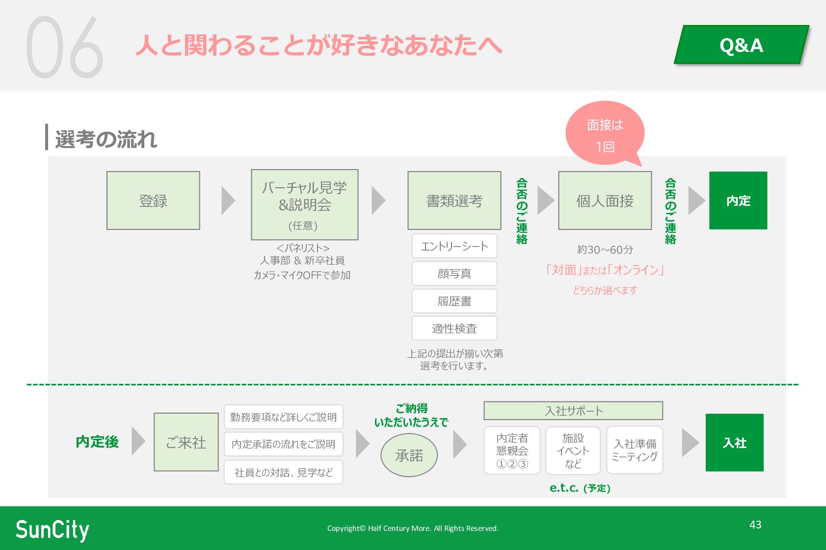 Copyright© Half Century More. All Rights Reserved. 43 選考の流れ 人と関わることが好きなあなたへ