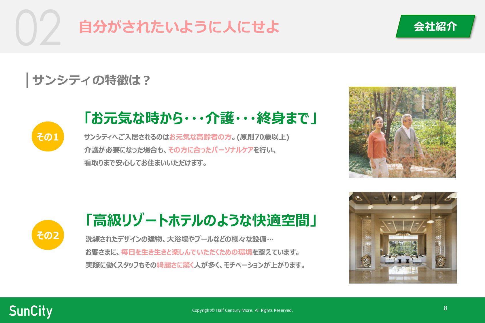 Copyright© Half Century More. All Rights Reserved. 8 自分がされたいように人にせよ 会社紹介