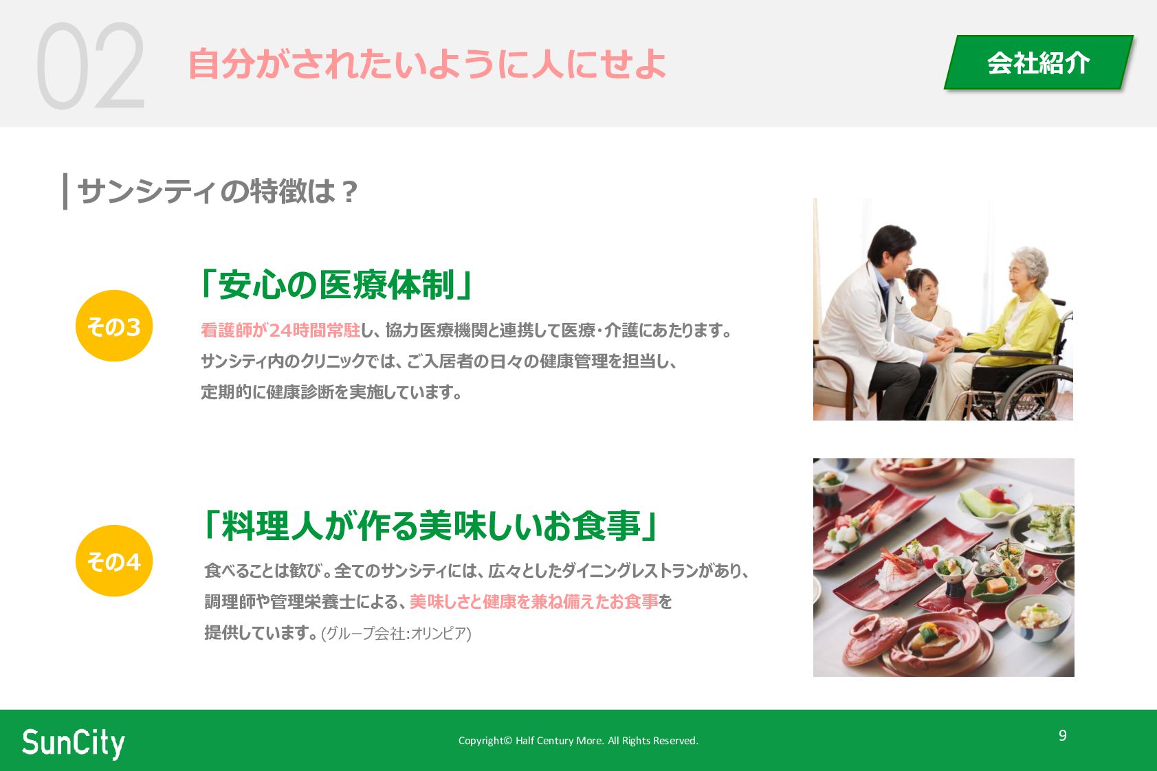 Copyright© Half Century More. All Rights Reserved. 9 自分がされたいように人にせよ 会社紹介