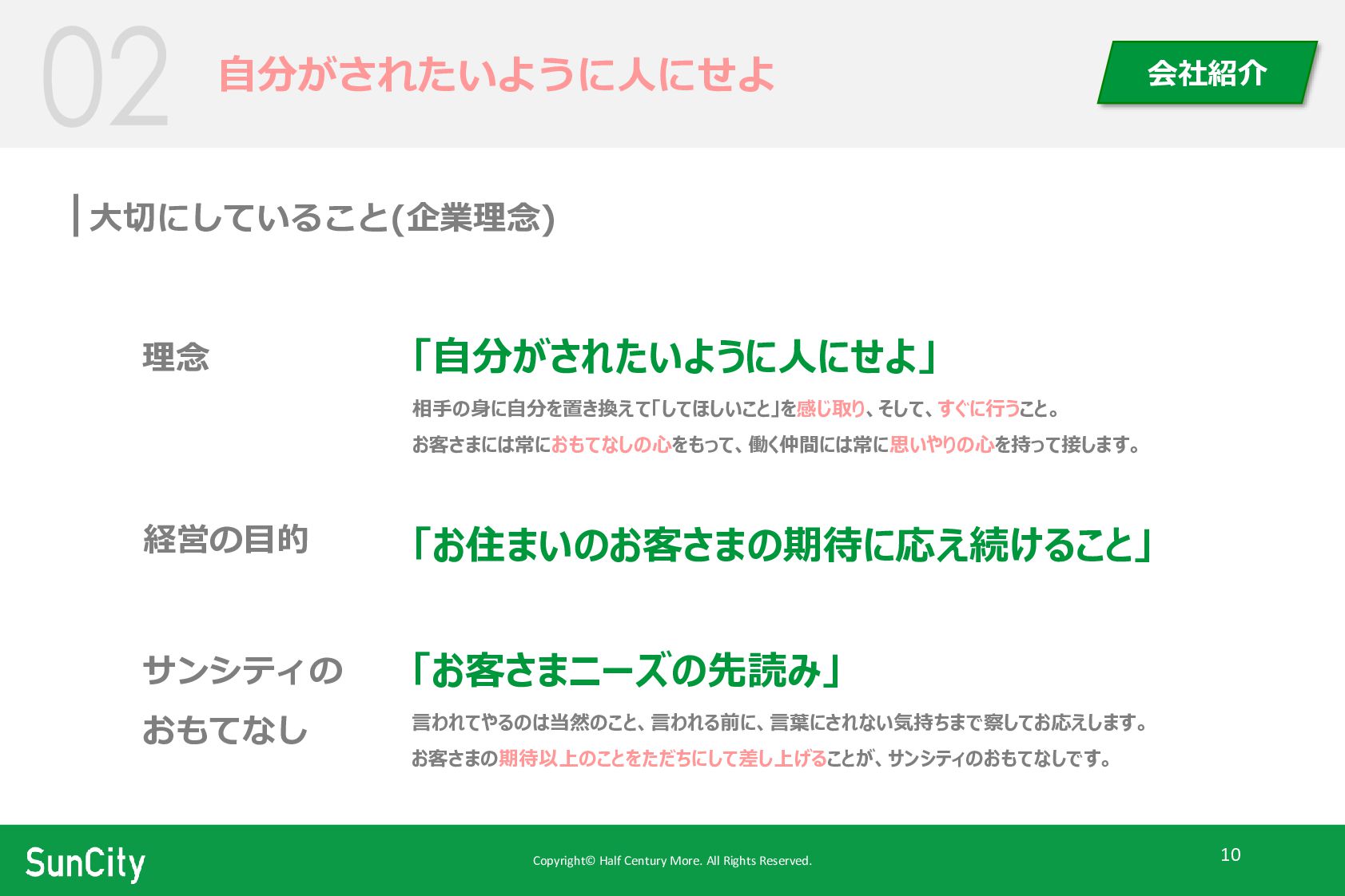 Copyright© Half Century More. All Rights Reserved. 10 自分がされたいように人にせよ 会社紹介