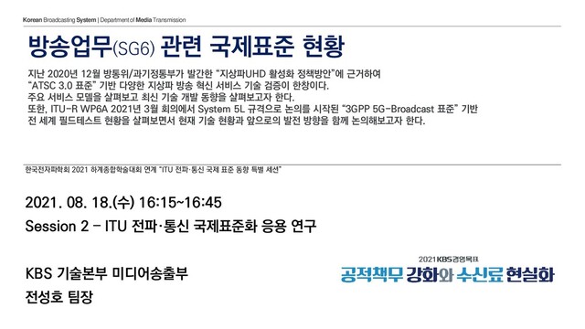 210818 방송업무(SG6) 관련 국제표준 현황 @ 한국전자파학회 2021 하계종합...