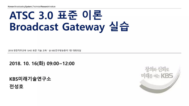 181016 ATSC 3.0 표준 이론 / Broadcast Gateway 실습 @ KBS전주방송총국 대회의실