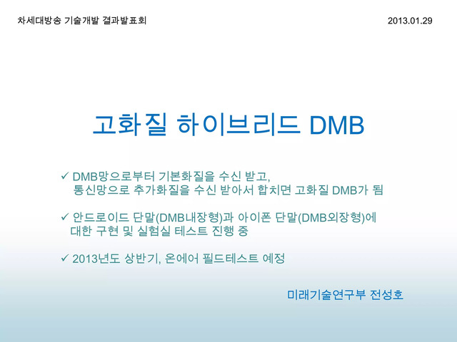 고화질 하이브리드 DMB 연구 / 기술연구소 2012년 기술개발 결과 발표회 (2차)...