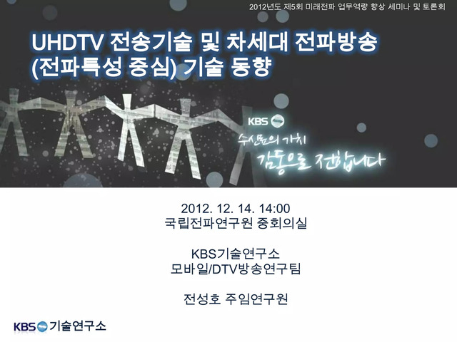 "UHDTV 전송기술 및 차세대 전파방송 (전파특성 중심) 기술 동향" 세미나 발표