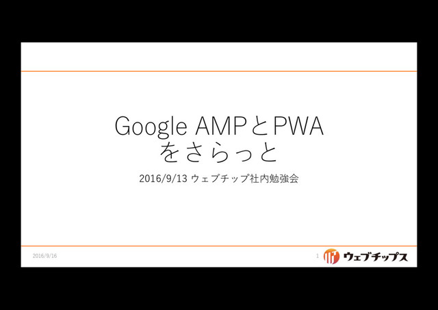 the performances of mobile site on the web • ホームページ: https://www.ampproject.org/ • 静的コンテンツを⾼速でレンダリング • AMP HTML • 幾つかの専⽤タグ • AMP JS • 唯⼀使⽤可能なJavaScriptライブラリ。 • JQueryは使⽤できない(使⽤する⽅法がないこともない) • Google AMP Cache • Google社が提供するCDN • HTTP 2.0を使⽤ 2016/9/16 2