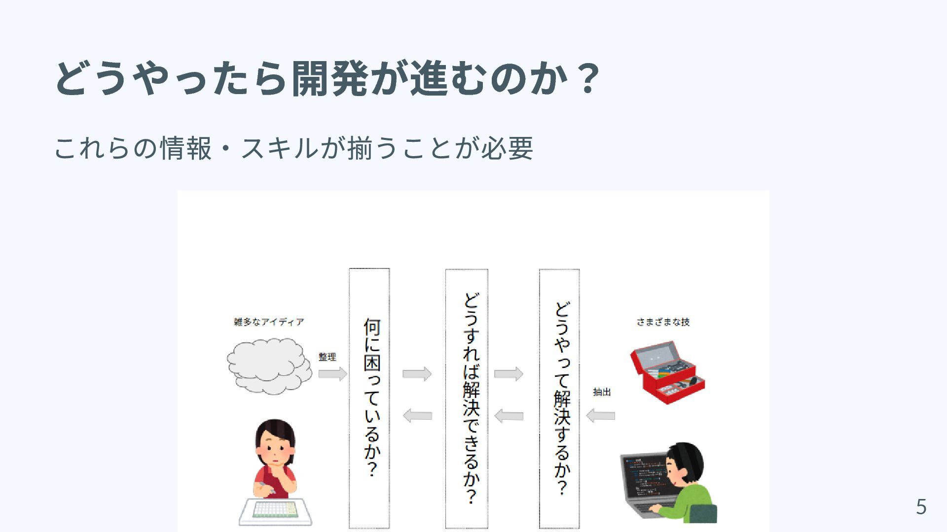 どうやったら開発が進むのか? これらの情報・スキルが揃うことが必要 5