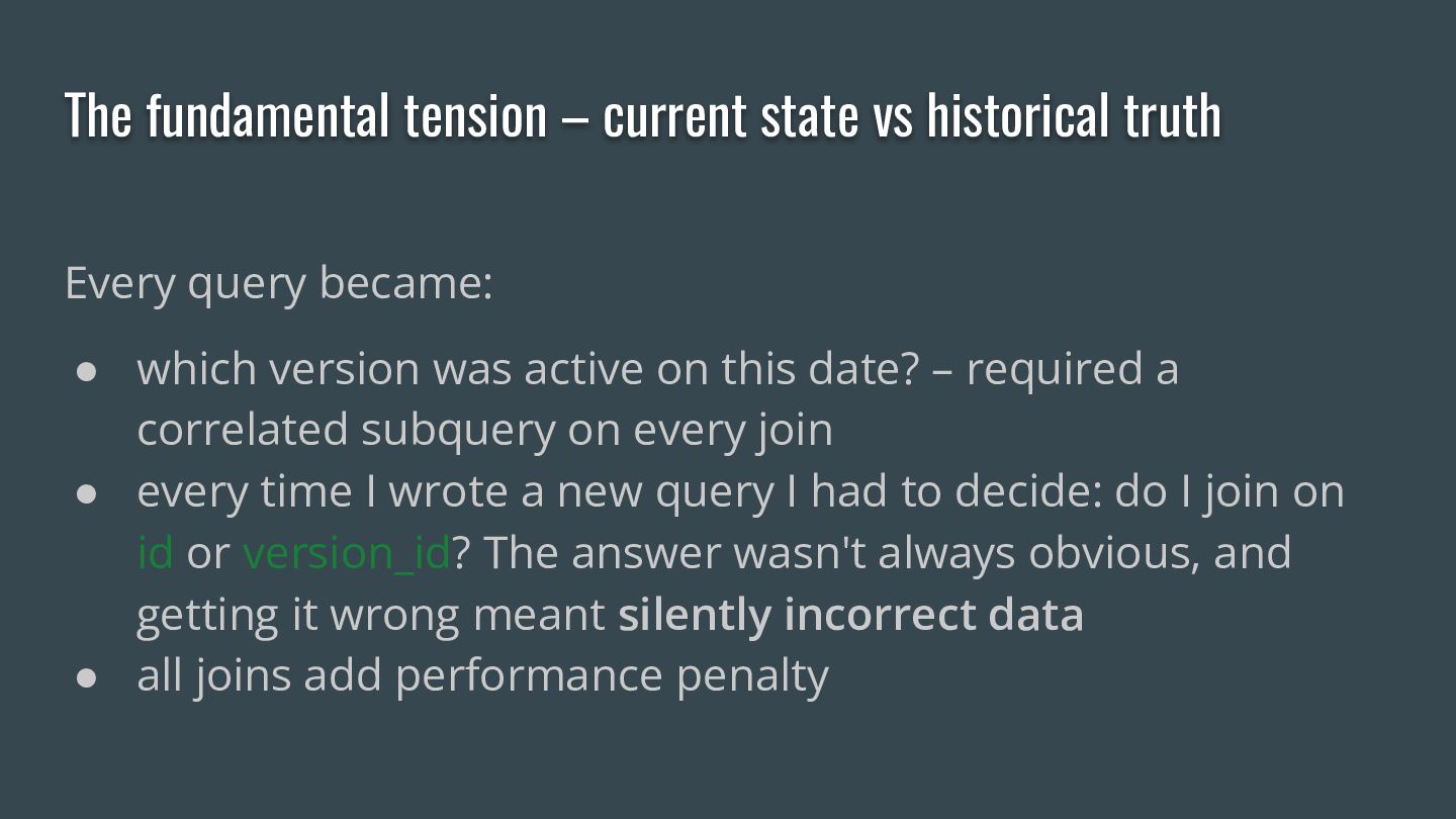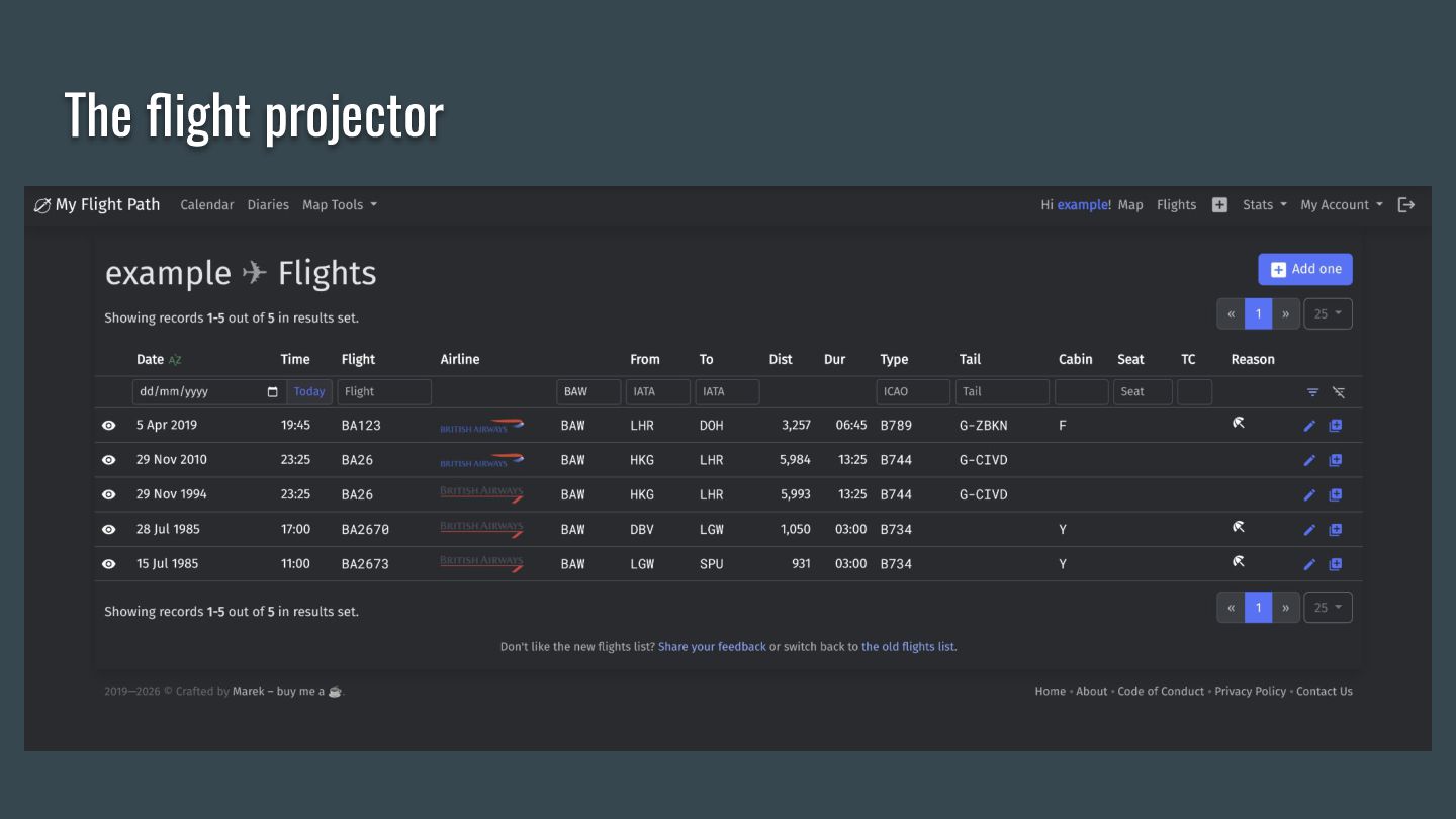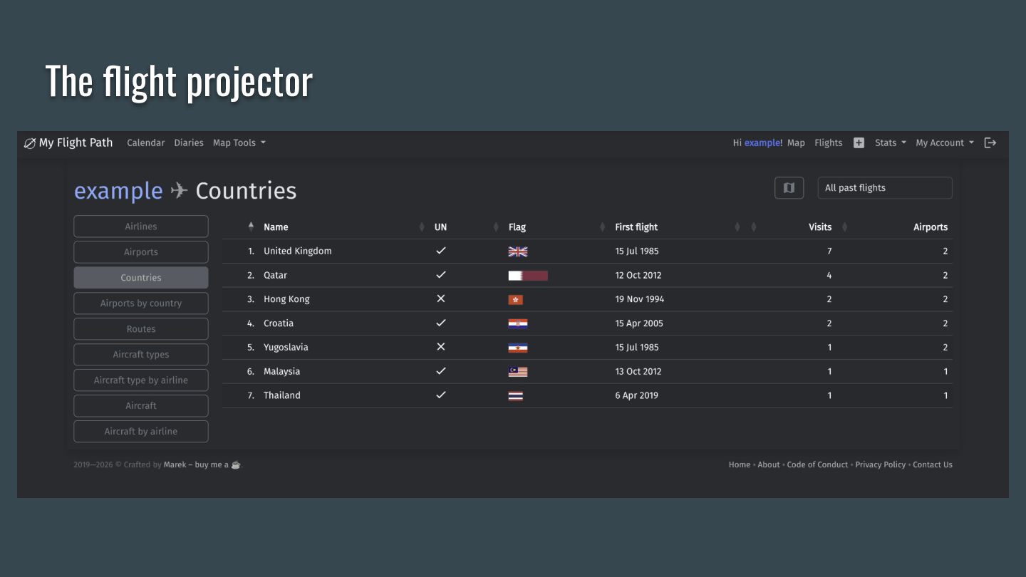 This talk is the story of how a hobby flight logger app outgrew its database, what event sourcing looks like in practice, and what you can take back to your projects. We'll walk through the core ideas — append-only event logs, projections, temporal queries — using real examples from aviation data where airlines merge, airports get renamed, and borders shift across decades.