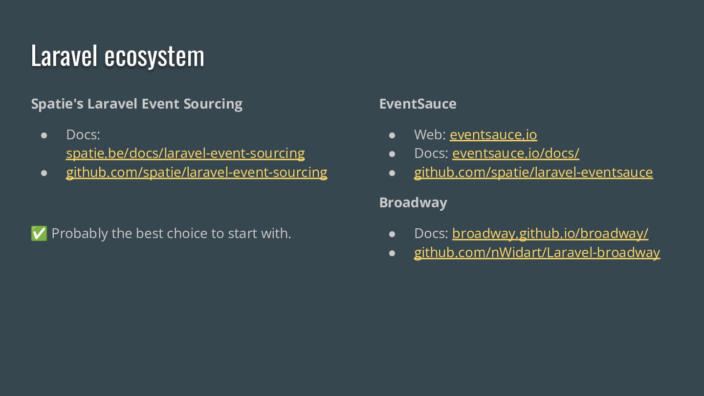 You'll leave with a clear mental model of event sourcing, an understanding of when it earns its complexity, and a map of the PHP-ecosystem libraries that let you start using it tomorrow.