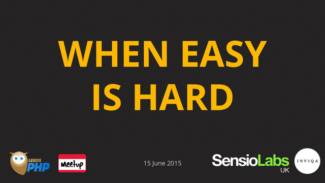 ...and when hard is easy. Building great applications in PHP is easy - with frameworks like Symfony, Laravel, Yii - it is easier than ever. But the easier you try to make developing applications, the harder it becomes to keep developing one continuously. In my talk I will discuss what easy and hard means at different stages of the project and how we