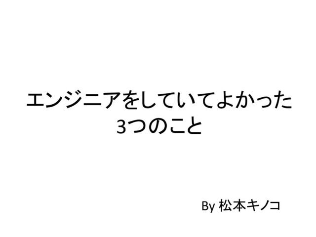 エンジニアをしていてよかった 3つのこと By 松本キノコ