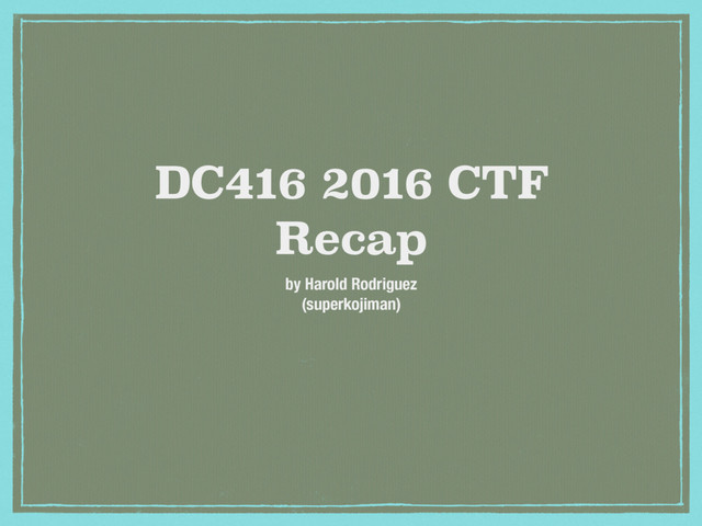 for hosting the event Zack for the kick-ass scoreboard that had a hidden flag Nick for orchestrating the whole thing Dolev for building the CTF infrastructure