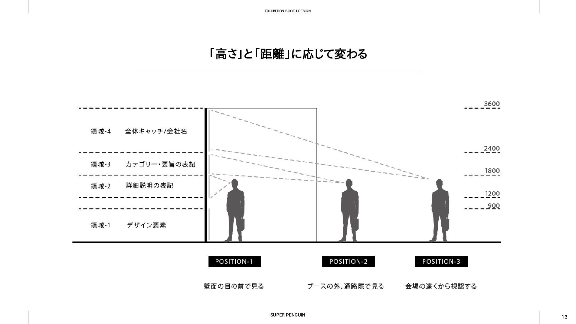 SUPER PENGUIN EXHIBITION BOOTH DESIGN 13 「高さ」と「距離」に応じて変わる